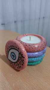El Yapımı Kapaklı Göz Desenli Dekoratif Beton Kap Soya Bazlı Mum, Vanilya Kokulu El Yapımı Kapaklı Göz Desenli Dekoratif Beton Kap Soya Bazlı Mum, Vanilya Kokulu GOZMUM1 تک سایز