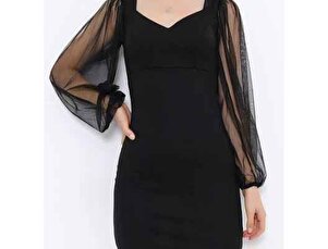 Gothic Kolları Tül Detay Şık Mini Siyah Elbise Gothic Kolları Tül Detay Şık Mini Siyah Elbise Rtuuıoıjhhhg