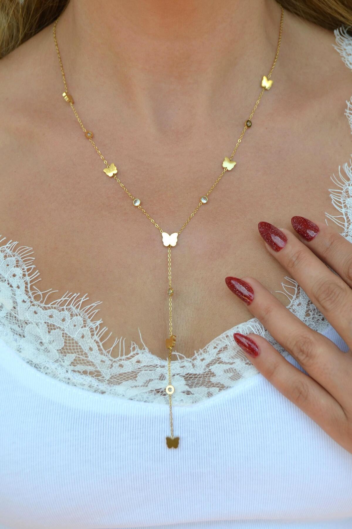 Gold Renk Kelebekli Çelik Kolye Gold Renk Kelebekli Çelik Kolye 7733111 تک سایز