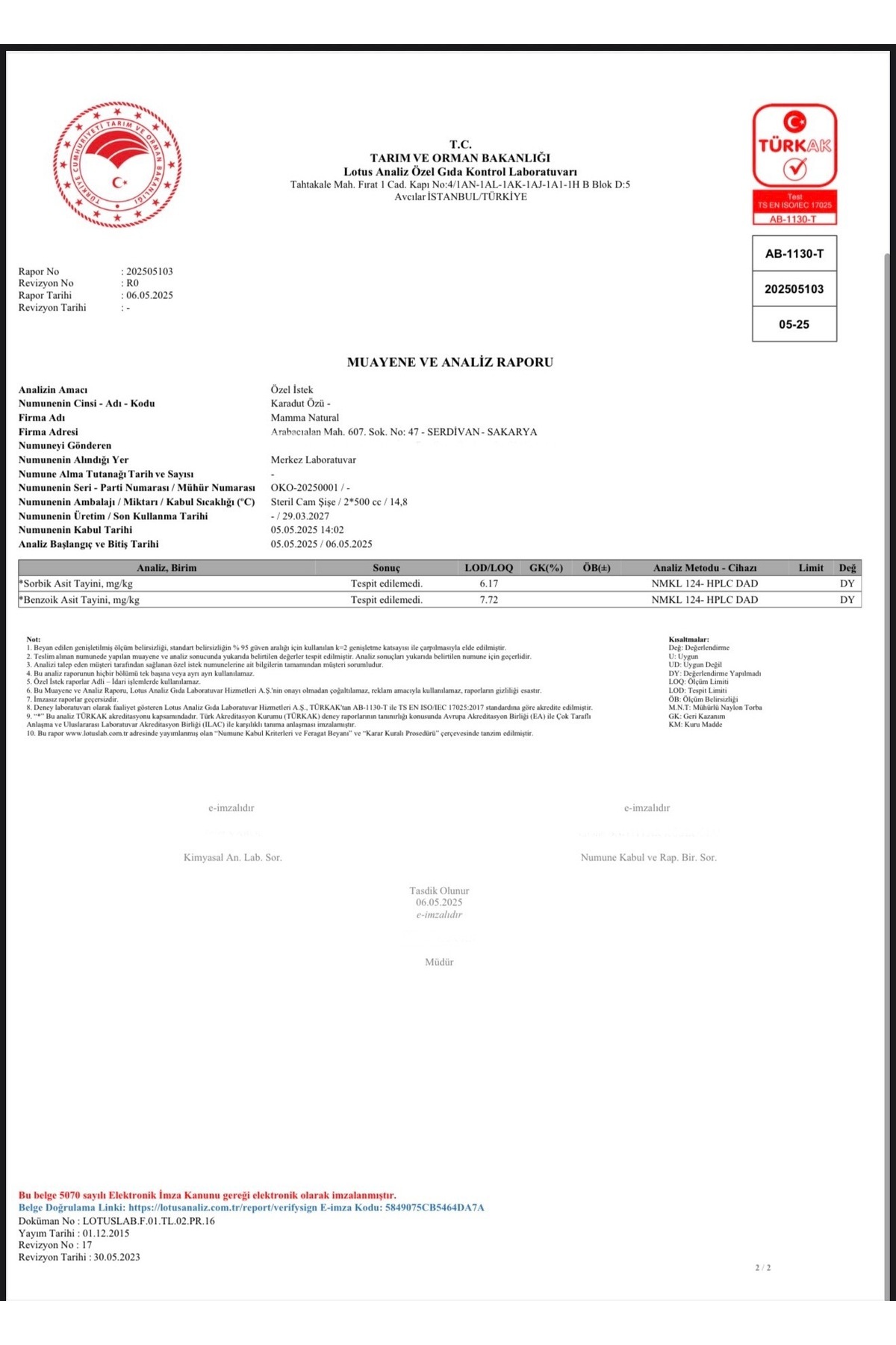 Karadut Özü 330 gr 9ay,(PESTİSİT,AĞIR METAL ANALİZLİ) Karadut Özü 330 gr 9ay,(PESTİSİT,AĞIR METAL ANALİZLİ) MBF-83 تک سایز