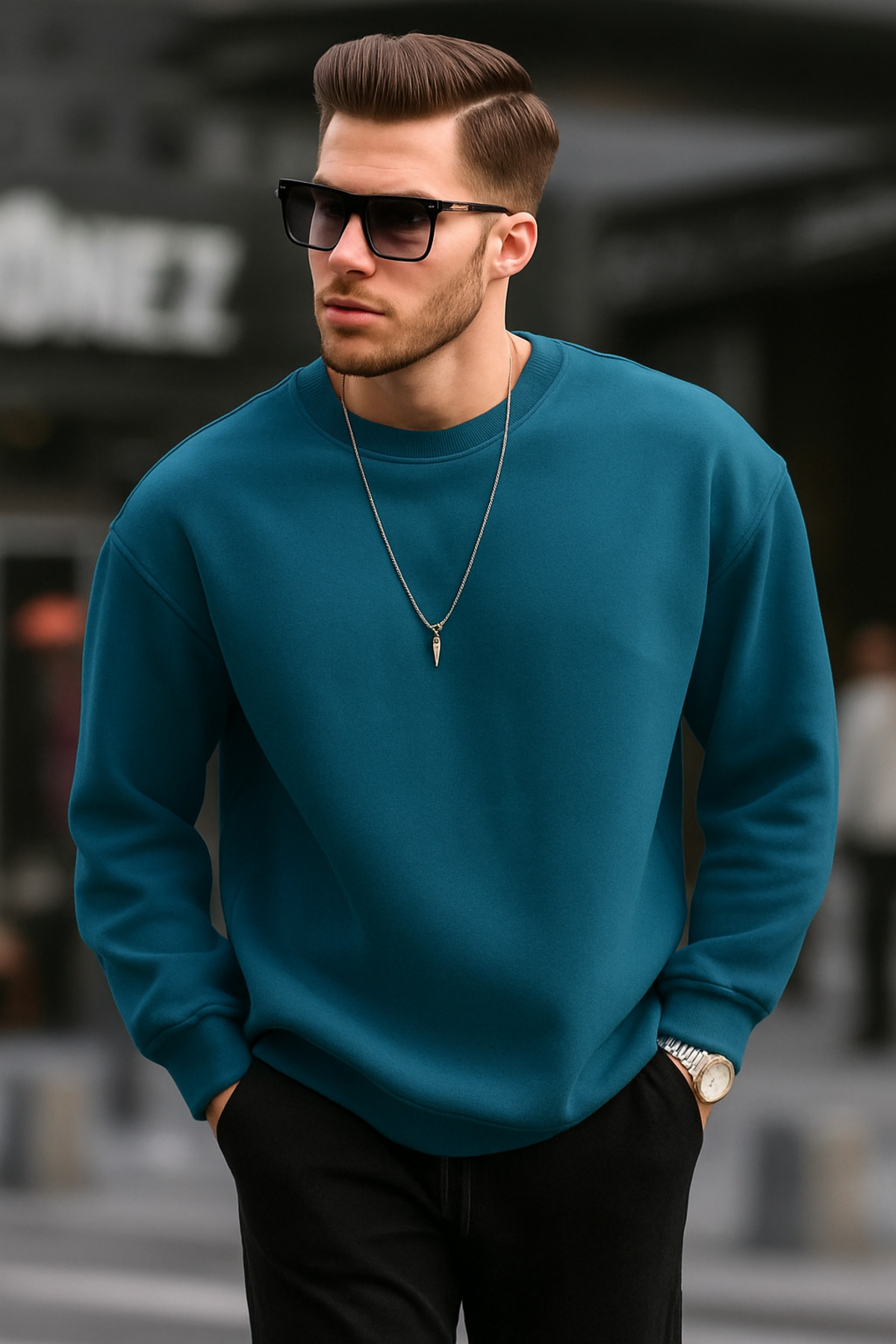 Erkek Slim Fit Bisiklet Yaka 2'li Paket Sade Baskısız 3 Iplik Sweatshirt Mavi Siyah34 Erkek Slim Fit Bisiklet Yaka 2'li Paket Sade Baskısız 3 Iplik Sweatshirt Mavi Siyah34 1400UNYA 2XL