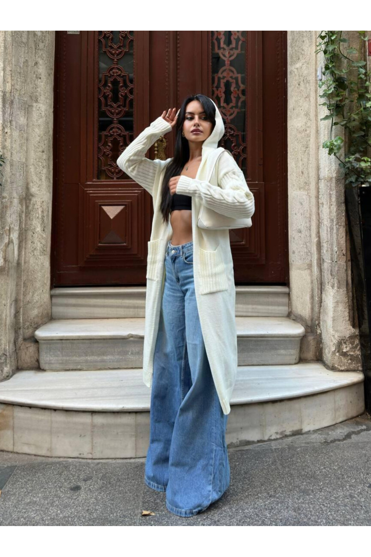 Kadın Renkli Kapüşonlu Yırtıklı Uzun Bol Tesettür Triko Hırka Kadın Renkli Kapüşonlu Yırtıklı Uzun Bol Tesettür Triko Hırka 33222 M/L