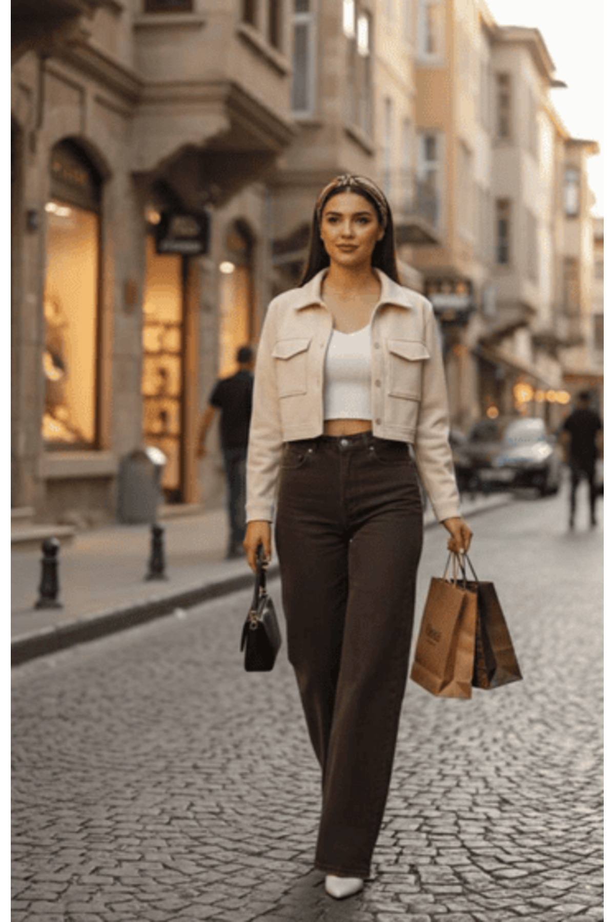 Yeni Sezon Crop Model Kaşe Ceket Bej Yeni Sezon Crop Model Kaşe Ceket Bej KASE1055 XL