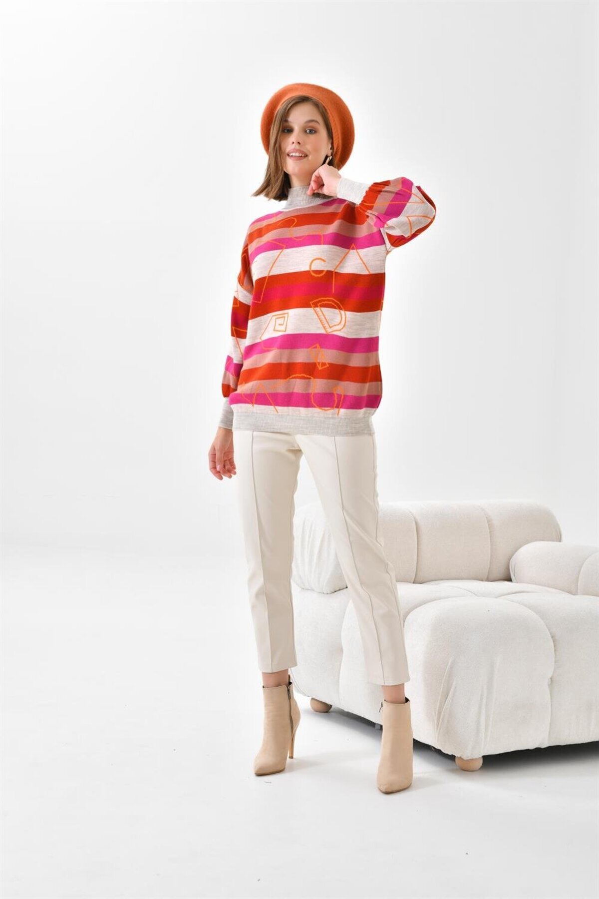 Kadın Geometrik Desenli Kazak Taş 20109 Kadın Geometrik Desenli Kazak Taş 20109 42-44