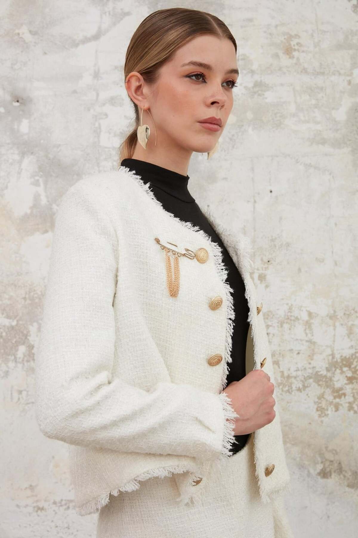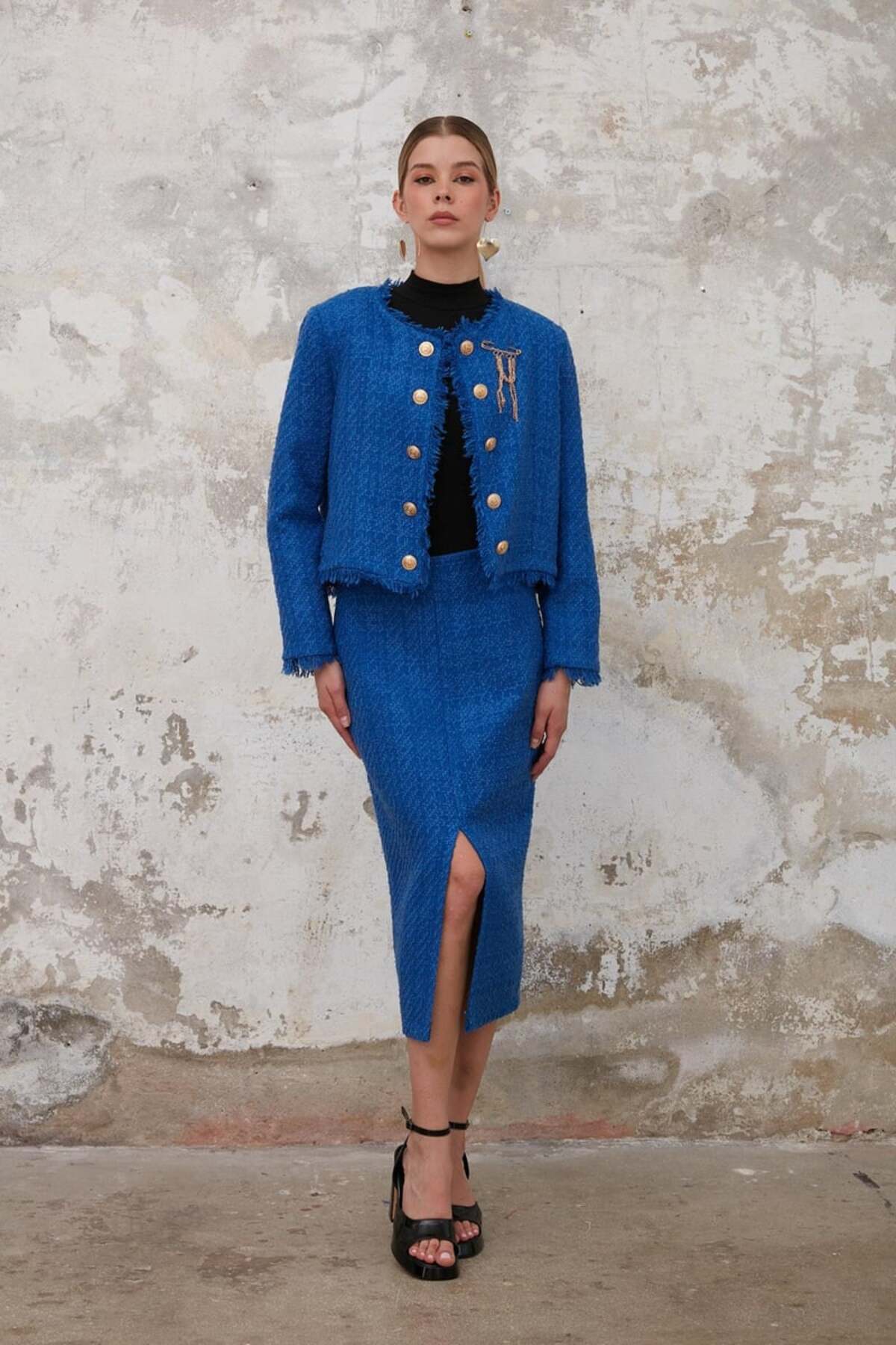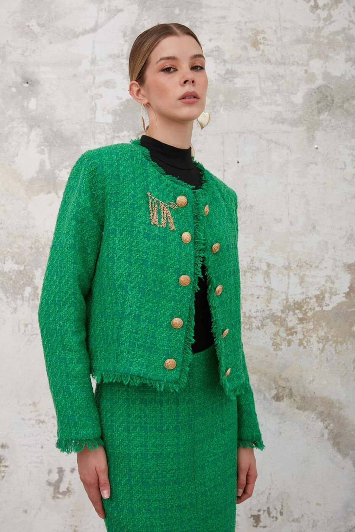 Ceket - Püskül, Etek - Yırtmaç Detaylı, Chanel Ceket - Etek Takım, Alt - Üst Takım Ceket - Püskül, Etek - Yırtmaç Detaylı, Chanel Ceket - Etek Takım, Alt - Üst Takım 9272FP L