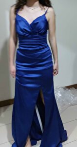 Kadın Saks Askılı Yırtmaçlı Uzun Saten Abiye & Mezuniyet Elbisesi Kadın Saks Askılı Yırtmaçlı Uzun Saten Abiye & Mezuniyet Elbisesi 22Y708080 42