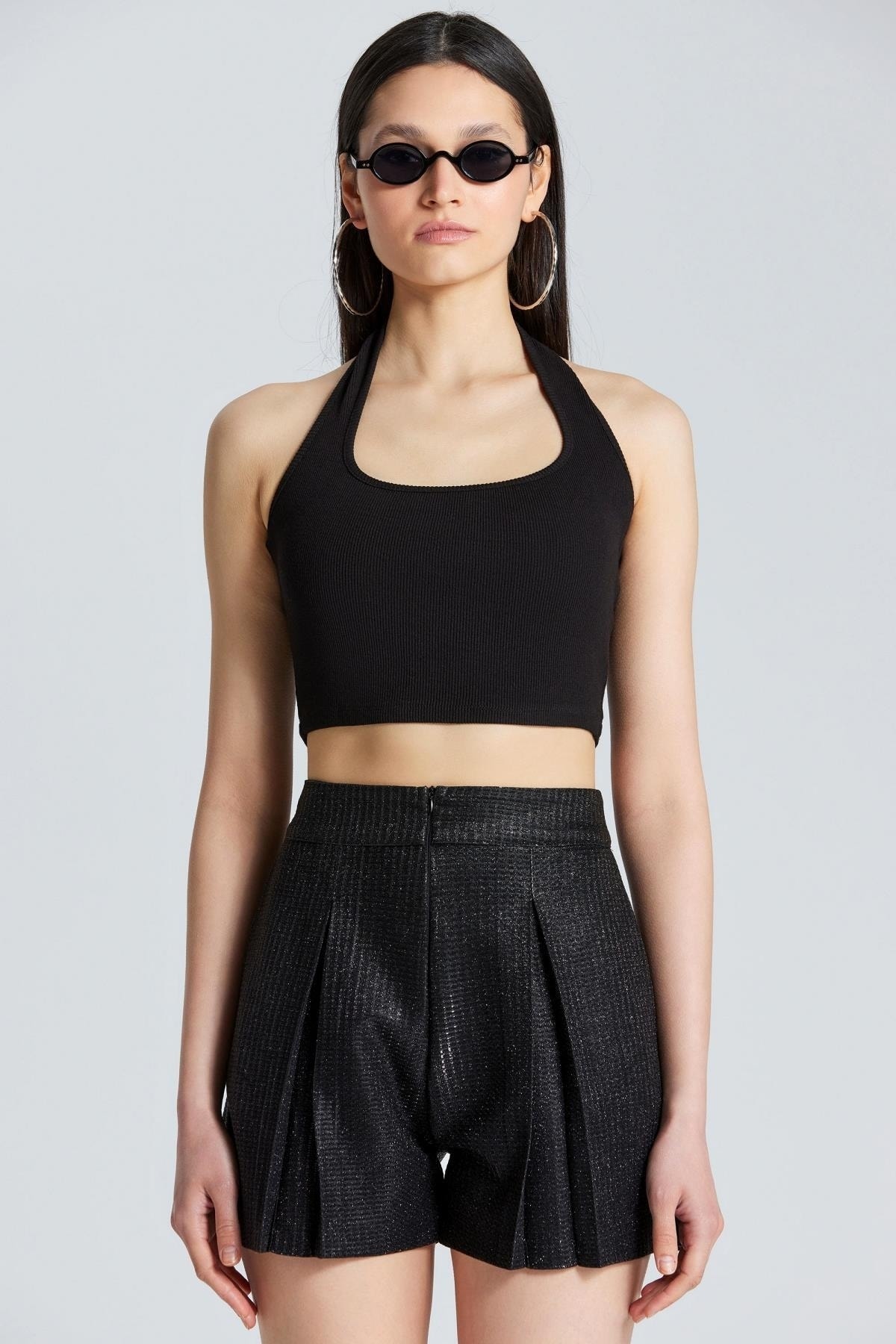 wft1567 Tek Kol Crop Siyah Bluz wft1567 Tek Kol Crop Siyah Bluz 2XL
