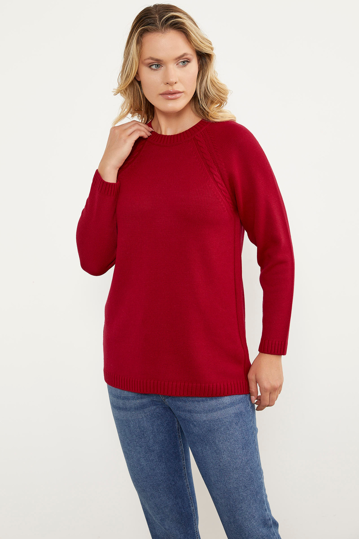 Saç Örgü Detaylı Tunik Triko Kazak - Kırmızı Saç Örgü Detaylı Tunik Triko Kazak - Kırmızı 23K2115-32436.0001 L