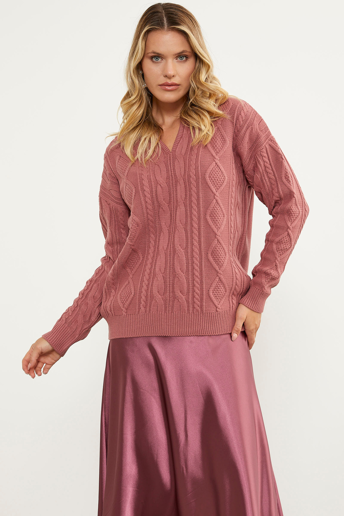 Polo Yaka Desenli Triko Kazak - Gül Polo Yaka Desenli Triko Kazak - Gül 23K2115-32460.0001 L