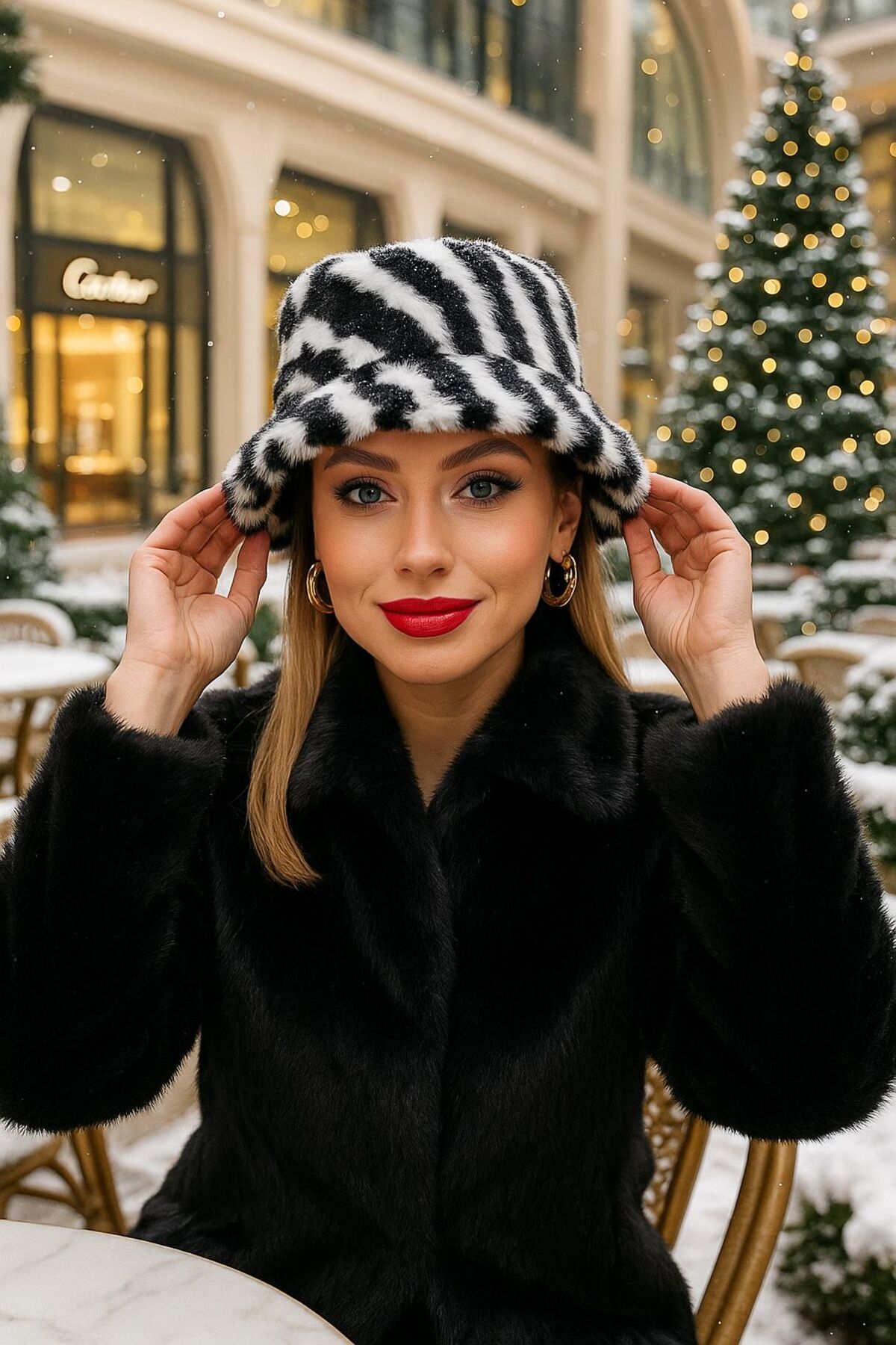 Siyah Beyaz Desenli Peluş Bucket Şapka Siyah Beyaz Desenli Peluş Bucket Şapka 7VKC8PHE95 تک سایز