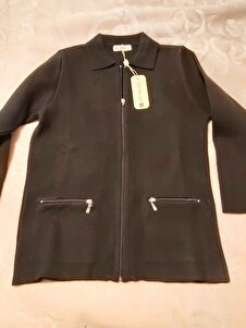 Cepli Gömlek Yaka Fermuarlı Triko Hırka - Siyah Cepli Gömlek Yaka Fermuarlı Triko Hırka - Siyah 23K2112-34442.0001 L