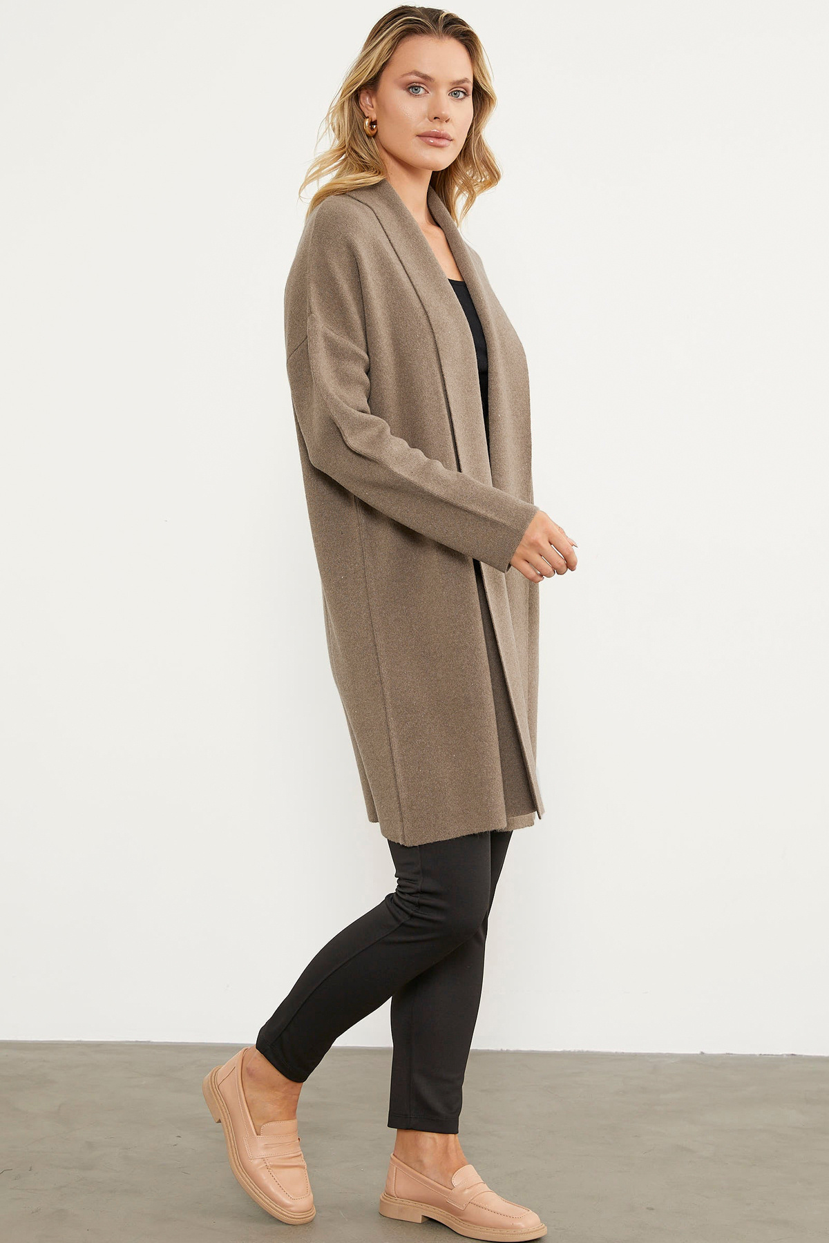 Büyük Beden Şal Yaka Yünlü Triko Hırka - Sütlü Kahve Büyük Beden Şal Yaka Yünlü Triko Hırka - Sütlü Kahve 23K2112-34436.0001 XL