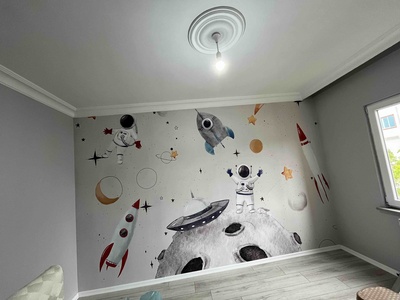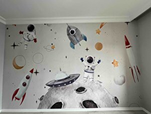 Uzay Temalı Astronot Uzay Gemisi ve Gezegenli Bebek Çocuk Odası Poster Duvar Kağıdı Uzay Temalı Astronot Uzay Gemisi ve Gezegenli Bebek Çocuk Odası Poster Duvar Kağıdı DK02A75 210 x 315