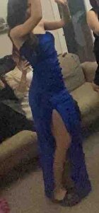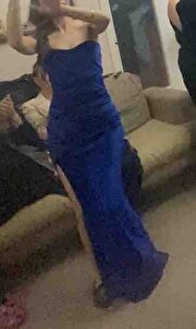 Saks Mavisi Kalp Yaka Derin Yırtmaç Detaylı Kadife Kumaş Elbise Saks Mavisi Kalp Yaka Derin Yırtmaç Detaylı Kadife Kumaş Elbise DFX582636 L