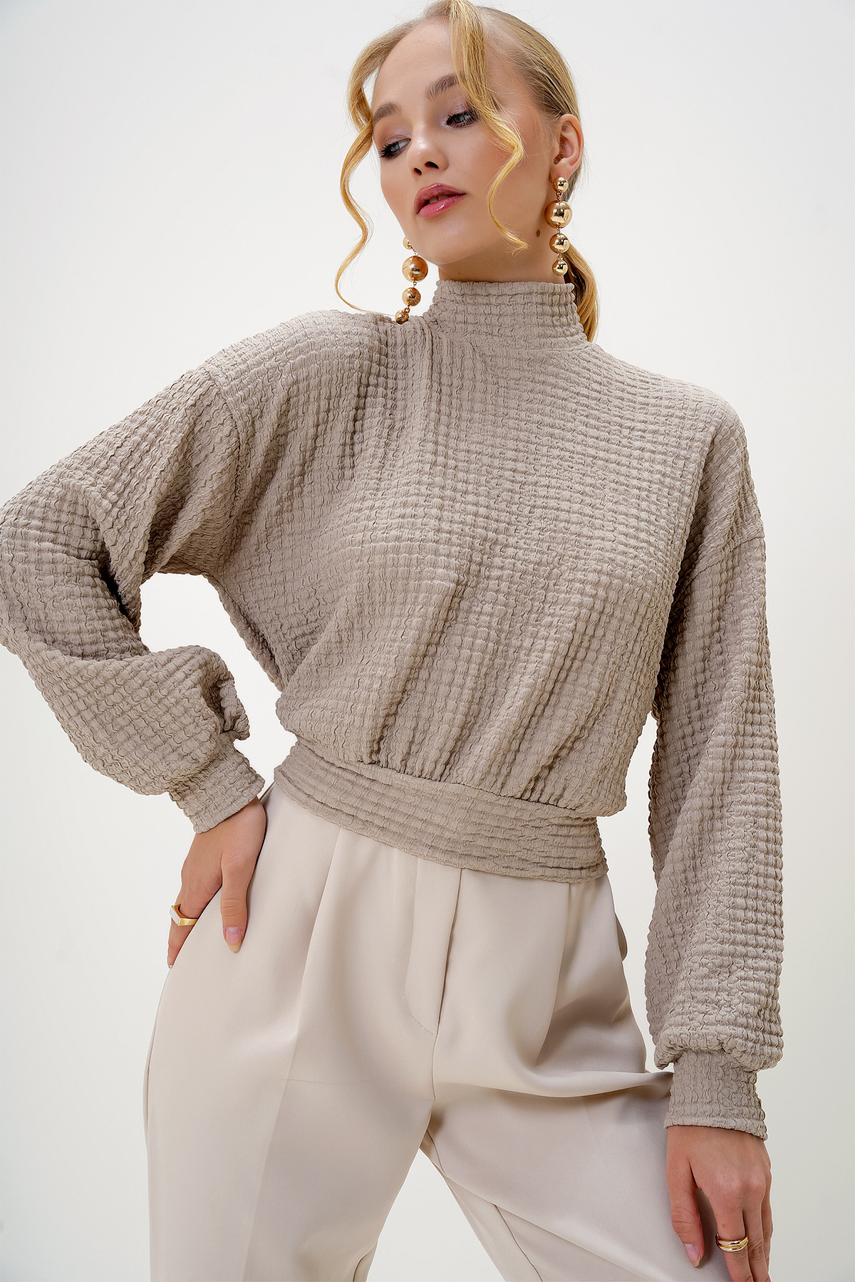 Kadın Saks Bisiklet Yaka Anvelop Kadife Crop Bluz ALC-X10947 Kadın Saks Bisiklet Yaka Anvelop Kadife Crop Bluz ALC-X10947 XL