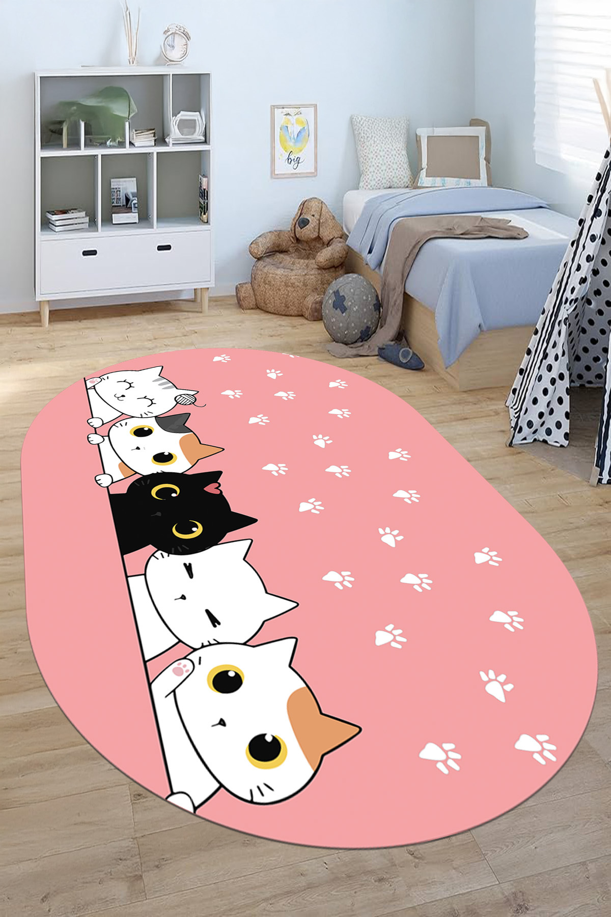 Pembe Kedi Desenli Yıkanabilir Kaymaz Taban Leke Tutmaz Bebek ve Çocuk Odası Halısı Pembe Kedi Desenli Yıkanabilir Kaymaz Taban Leke Tutmaz Bebek ve Çocuk Odası Halısı AYC022 160 x 230