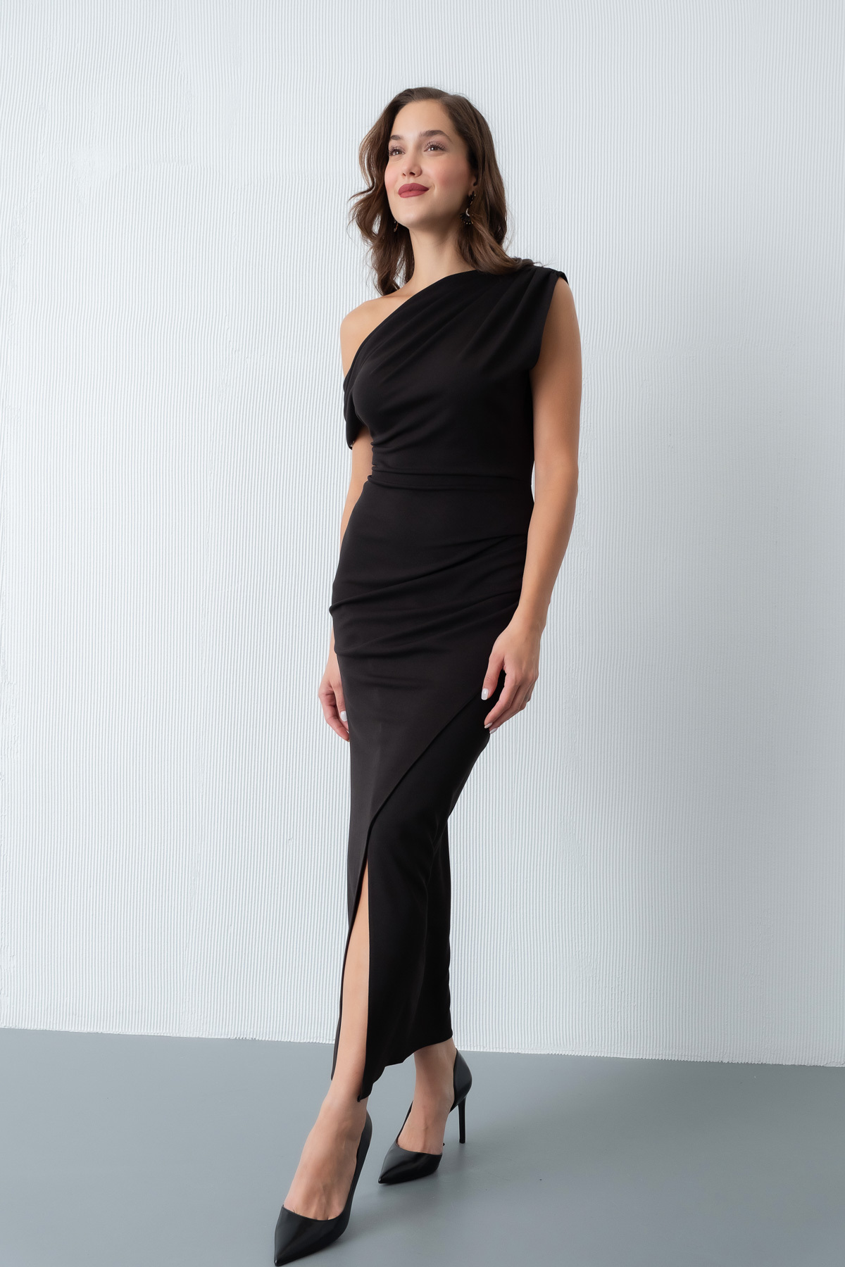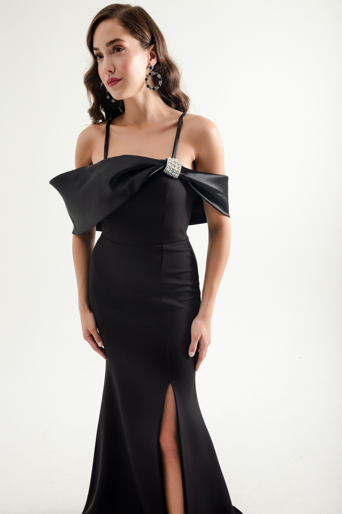 Kadın Siyah Kayık Yaka İncili Uzun Abiye Elbise Kadın Siyah Kayık Yaka İncili Uzun Abiye Elbise 23Y262062 42