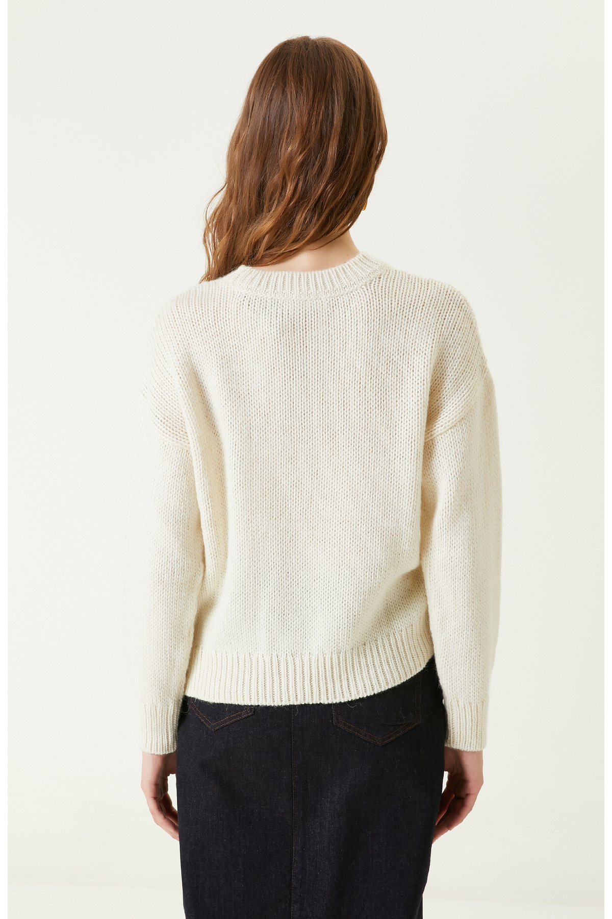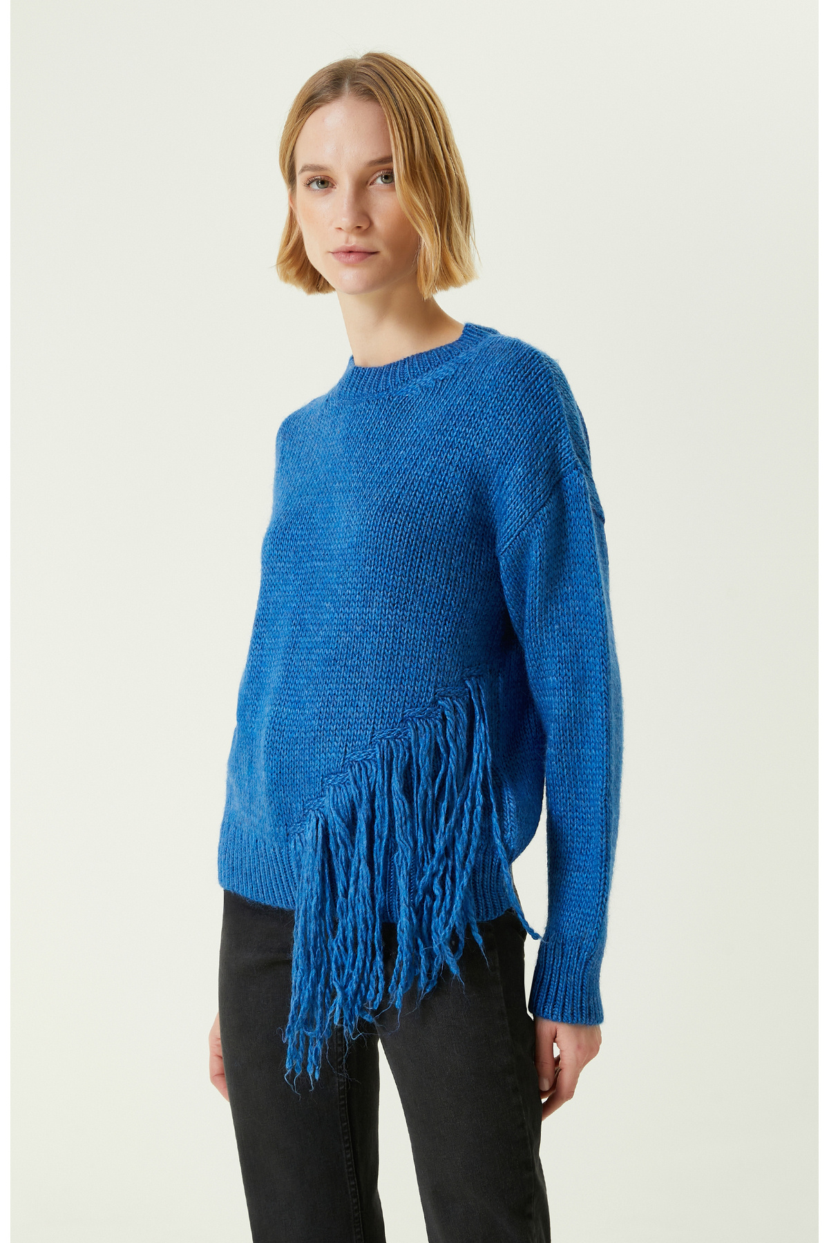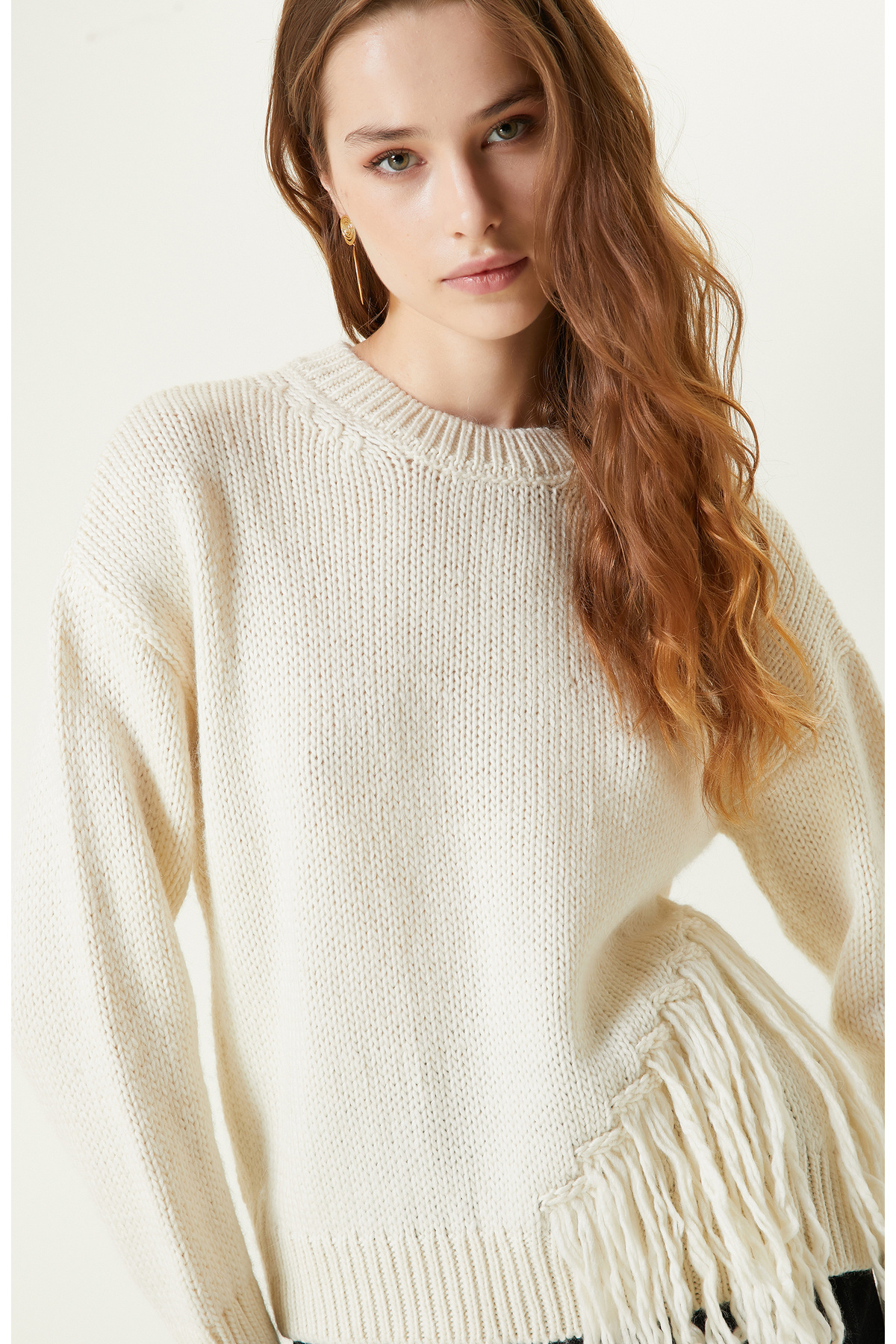 Ekru Etek Ucu Püskül Detaylı Triko Kazak Ekru Etek Ucu Püskül Detaylı Triko Kazak 1088617 XL