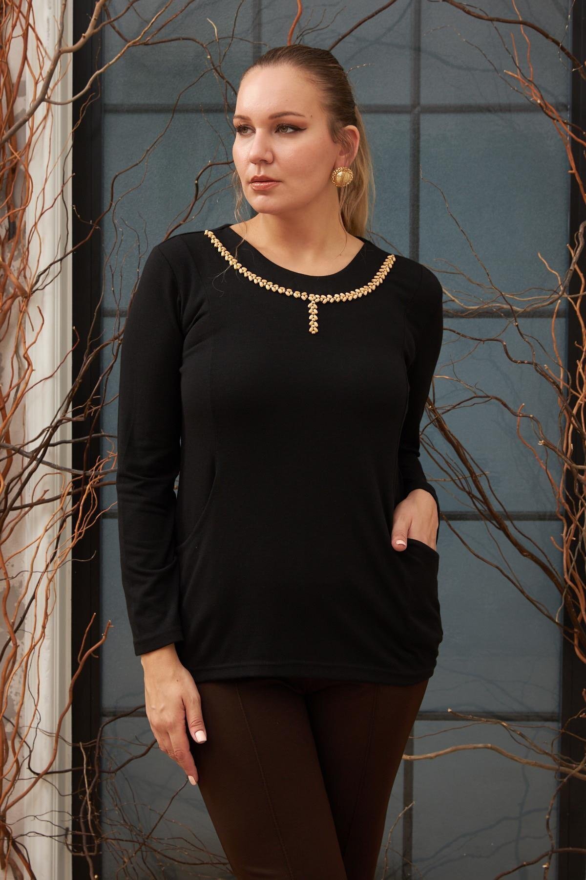 Kolye Detaylı Yırtmaçlı Büyük Beden Vizon Bluz Kolye Detaylı Yırtmaçlı Büyük Beden Vizon Bluz 38575424520 50