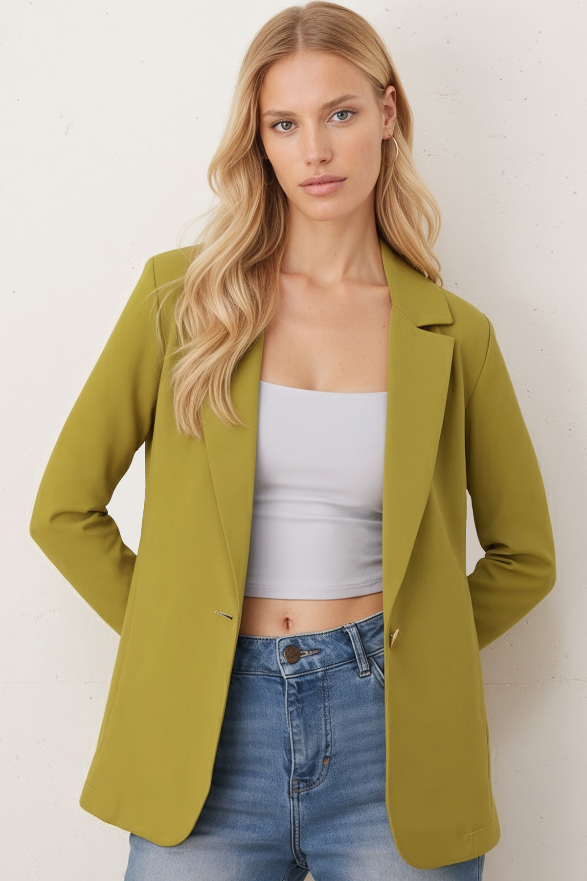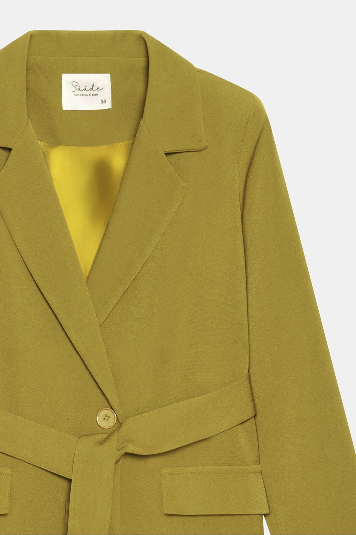 Yağ Yeşili Kadın Tek Düğmeli Dokuma Kruvaze Blazer Ceket - Kuşaklı Yağ Yeşili Kadın Tek Düğmeli Dokuma Kruvaze Blazer Ceket - Kuşaklı SD/MYAZ23CK0215 46