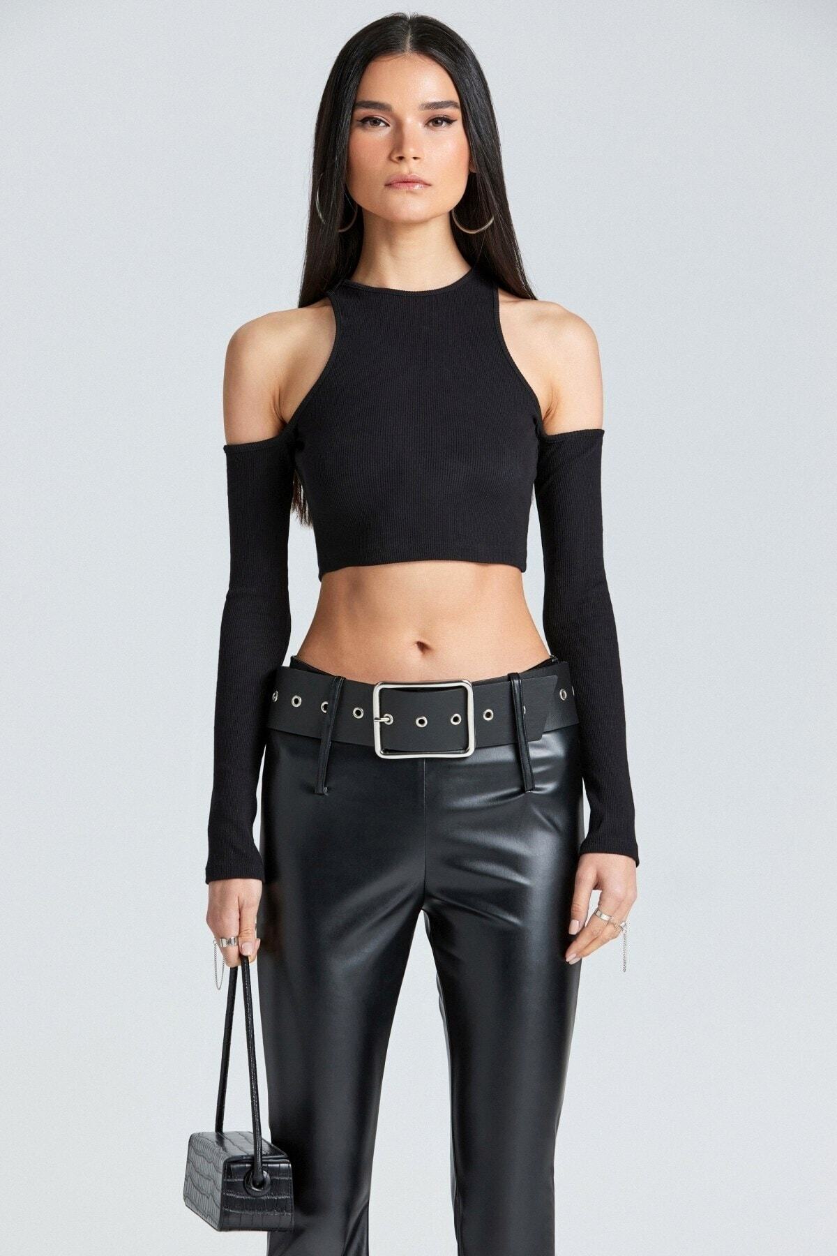 2772 Sırt ve Pencere Dekolteli Siyah Bluz 2772 Sırt ve Pencere Dekolteli Siyah Bluz L