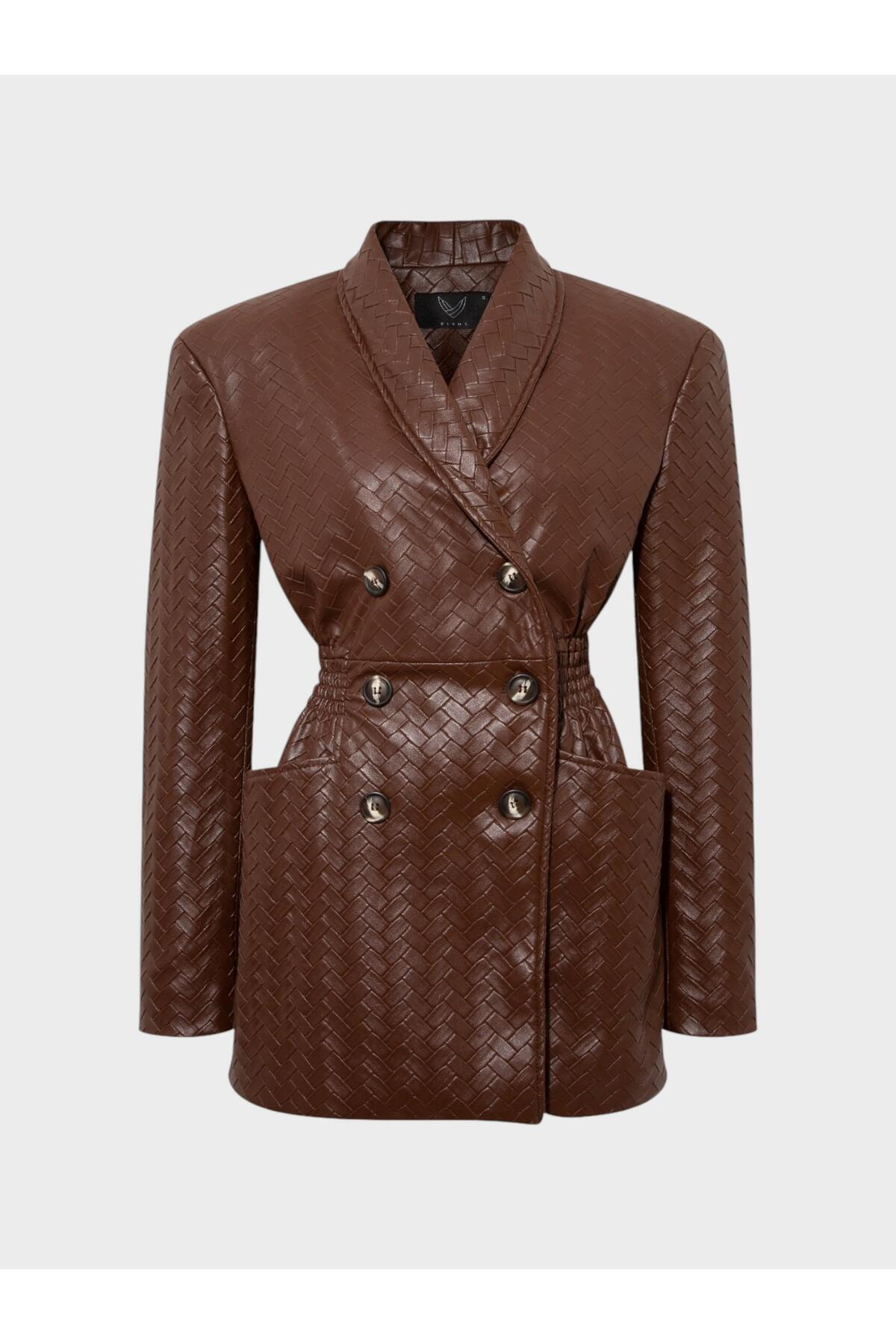 Kadın Taba Desenli Kemerli Deri Ceket | Women's Tan Patterned Belted Leather Jacket Kadın Taba Desenli Kemerli Deri Ceket | Women's Tan Patterned Belted Leather Jacket SKD-001 44
