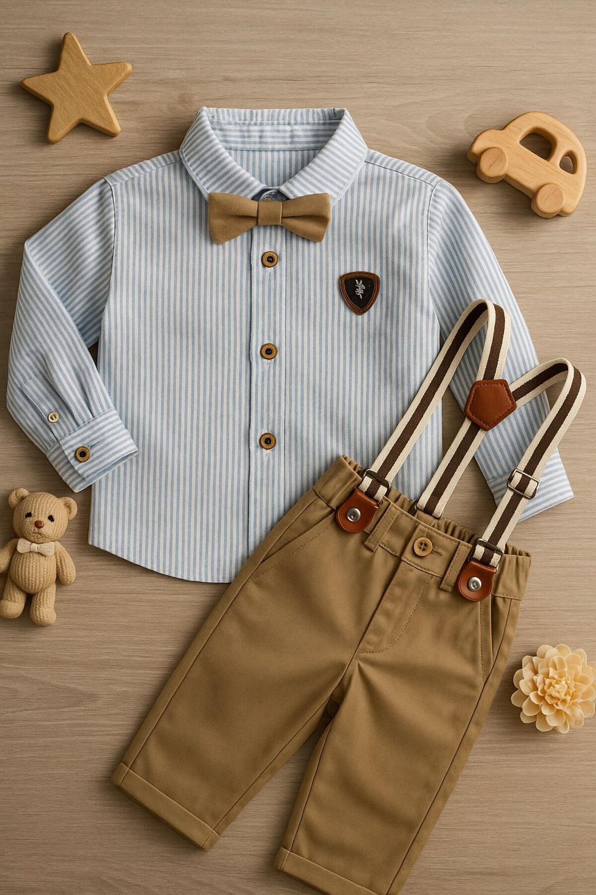 Krem Pitikareli Erkek Bebek Çocuk Gömlek Salopet Papyon Takım Krem Pitikareli Erkek Bebek Çocuk Gömlek Salopet Papyon Takım bebektakımlarısalopet 5 Yaş