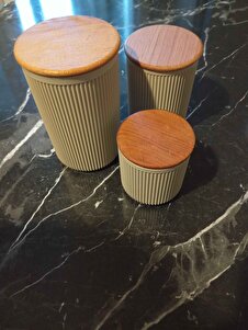 Sızdırmaz Vakumlu Ahşap Kapaklı Erzak Baharat Çay Şeker Saklama Kabı Seti 3 Lü Sızdırmaz Vakumlu Ahşap Kapaklı Erzak Baharat Çay Şeker Saklama Kabı Seti 3 Lü bej تک سایز