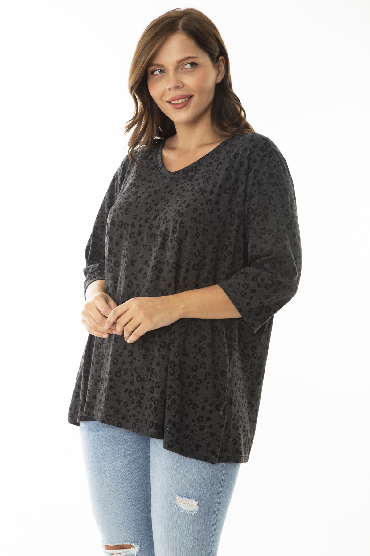 Kadın Büyük Beden Antrasit V Yakalı Kapri Kol Desenli Bluz 65N36959 Kadın Büyük Beden Antrasit V Yakalı Kapri Kol Desenli Bluz 65N36959 46-48