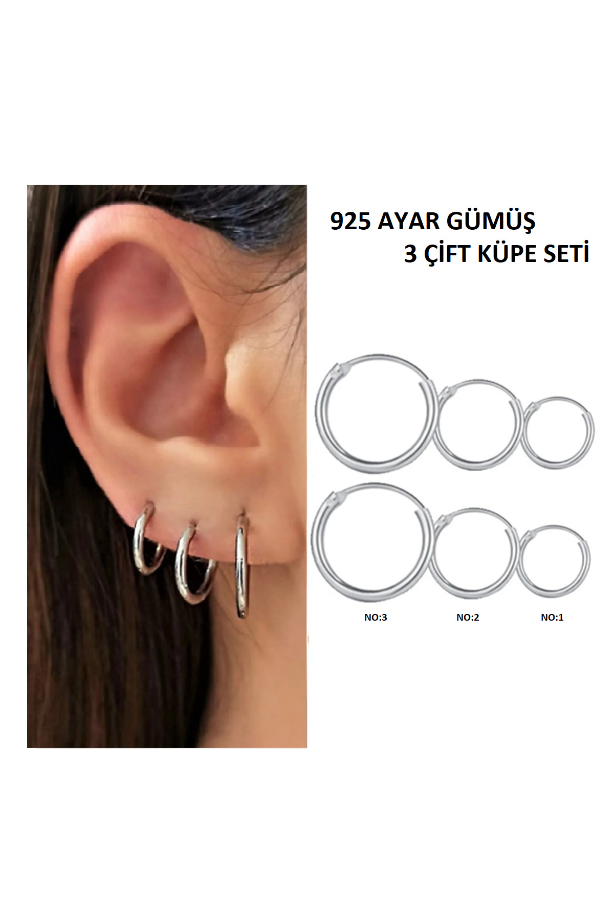 Gümüş Halka Küpe Kombini Gümüş Halka Küpe Kombini MEKS0617 تک سایز