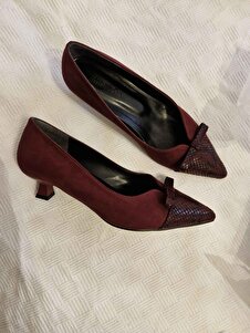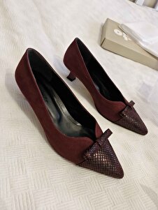 Pia Bordo Renk Yılan Derisi Ve Süet Kombinasyonlu Kadın Kısa Topuklu Ayakkabı Pia Bordo Renk Yılan Derisi Ve Süet Kombinasyonlu Kadın Kısa Topuklu Ayakkabı 02283TAO 42