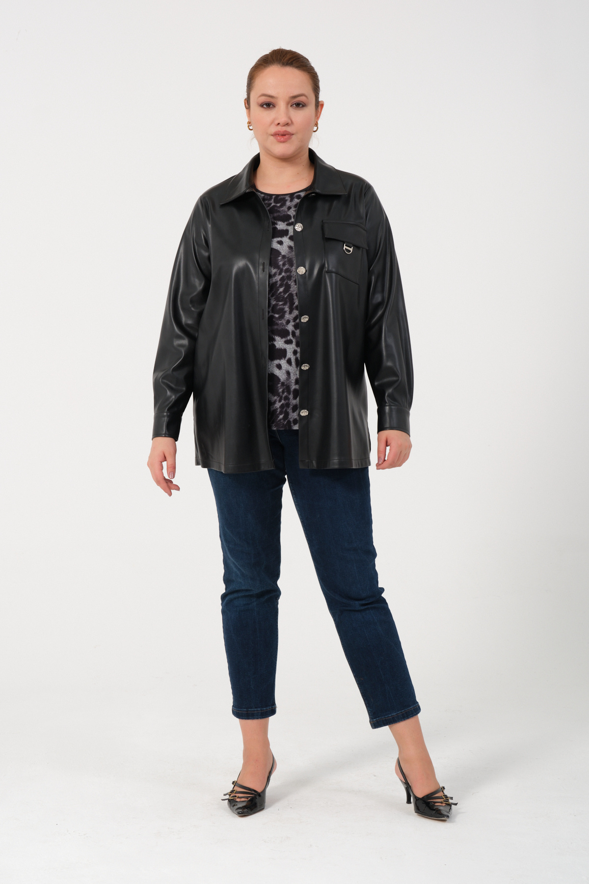 Kadın Siyah Cepli Suni Deri Ceket Gömlek Kadın Siyah Cepli Suni Deri Ceket Gömlek overderi L