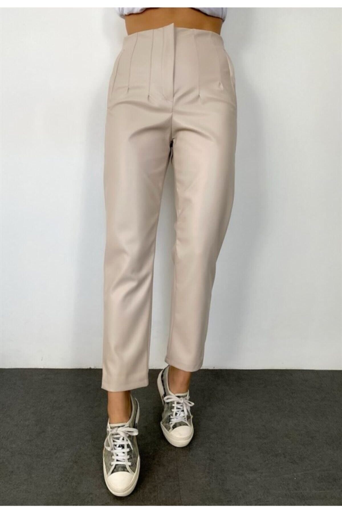 Yüksek Bel Pensli Şardonlu Kahverengi Deri Pantolon Yüksek Bel Pensli Şardonlu Kahverengi Deri Pantolon d1001 46
