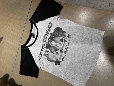 Gri Raglan Can I Stroke Him? Uzun Kollu Crop Gri Raglan Can I Stroke Him? Uzun Kollu Crop crop305 L