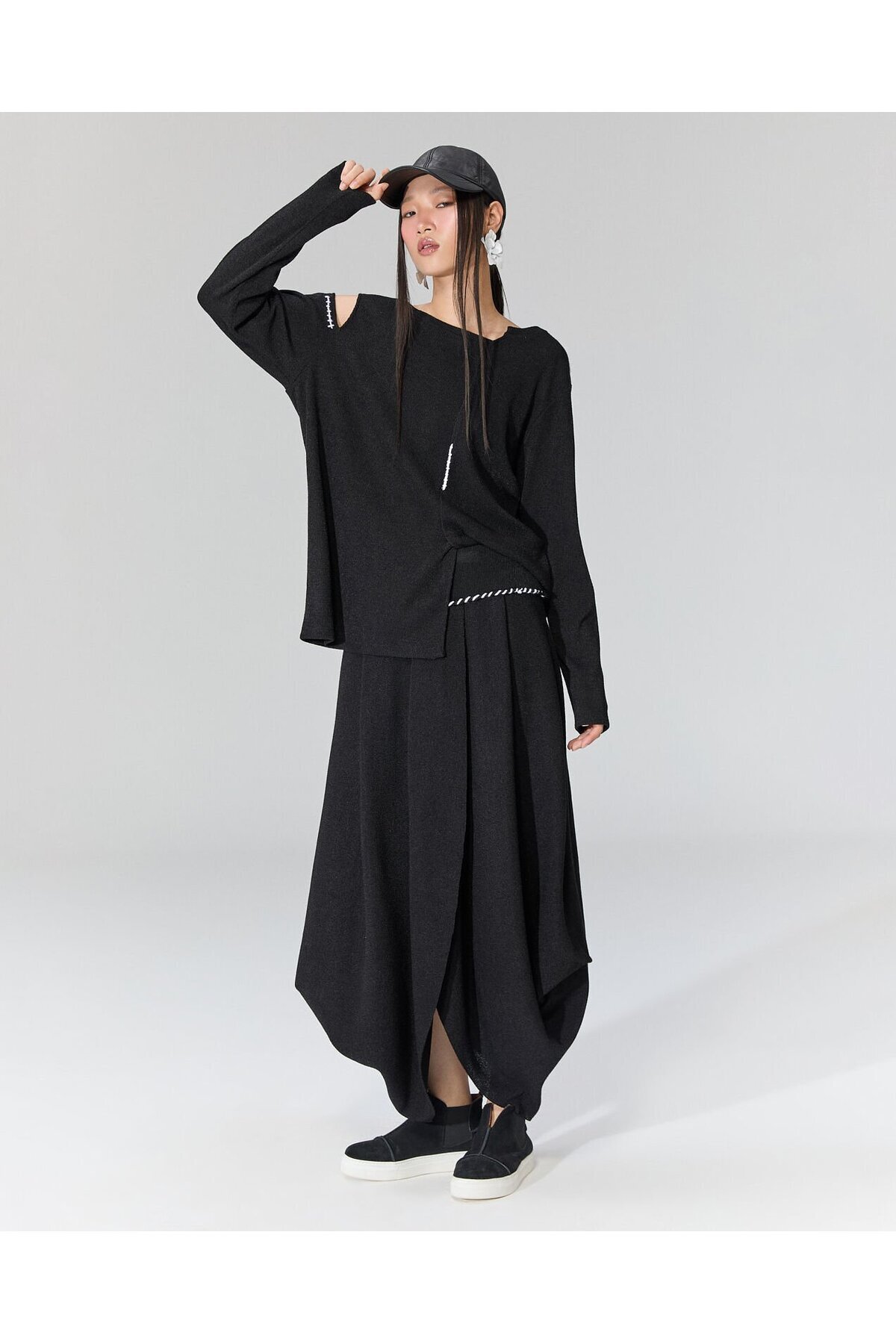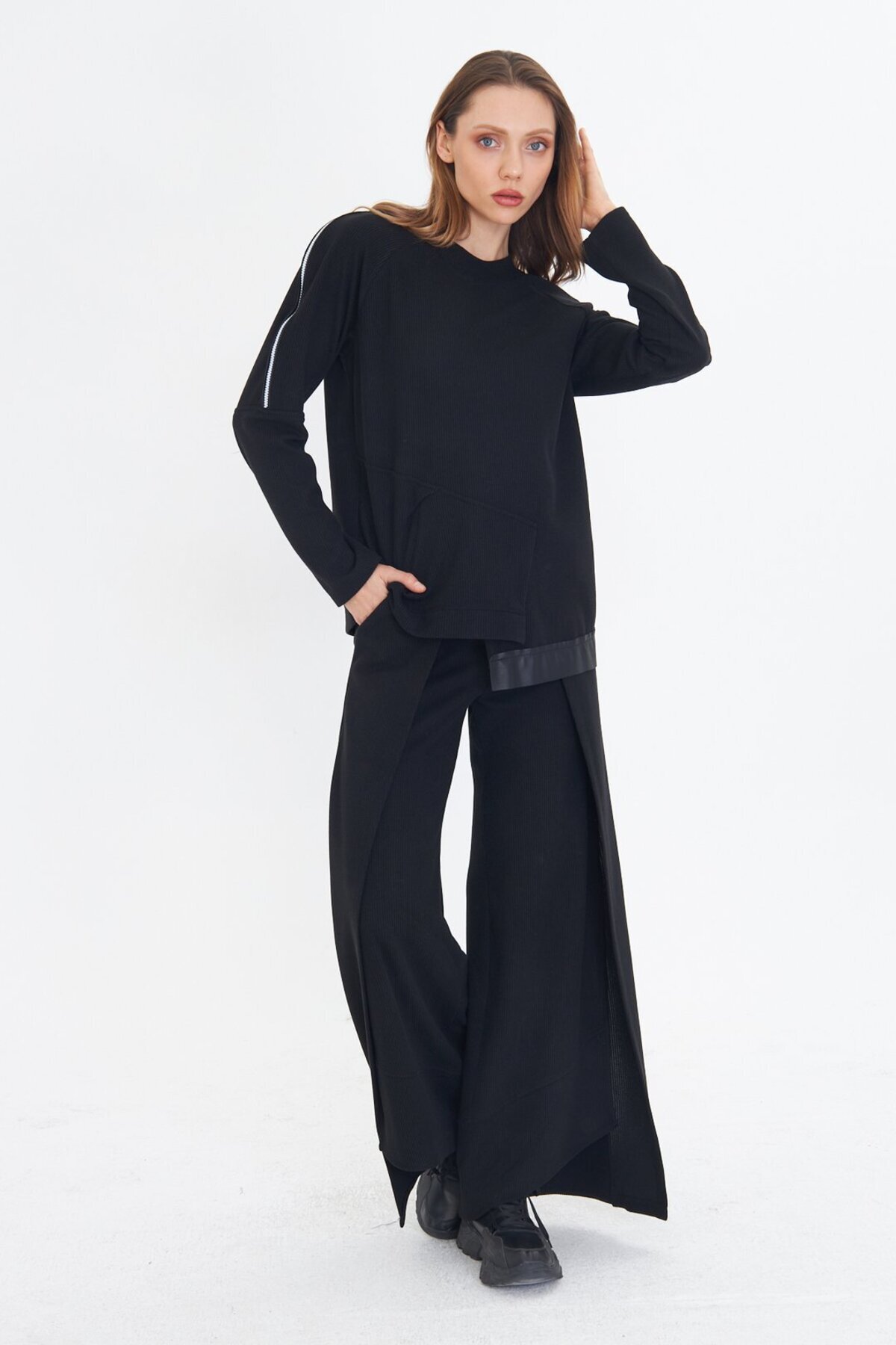 BOYUN VE OMUZLARI FERMUAR DETAYLI SİYAH BLUZ BOYUN VE OMUZLARI FERMUAR DETAYLI SİYAH BLUZ K8074OPİB XL