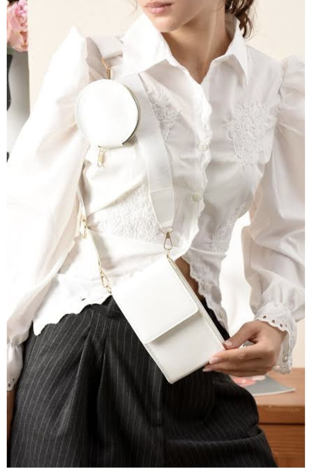 Beyaz Kadın Çapraz Askılı Cüzdan Çanta Beyaz Kadın Çapraz Askılı Cüzdan Çanta EP-20 تک سایز