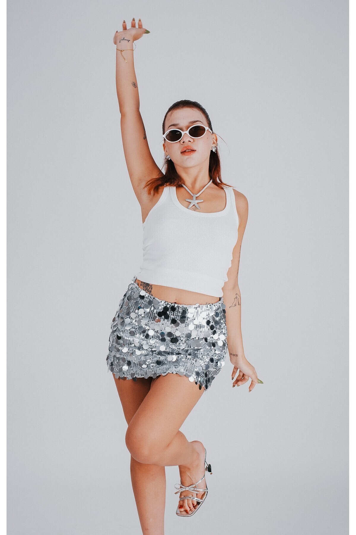 Kadın Beli Lastikli Pul Payet Mini Etek Kadın Beli Lastikli Pul Payet Mini Etek 27554 XL