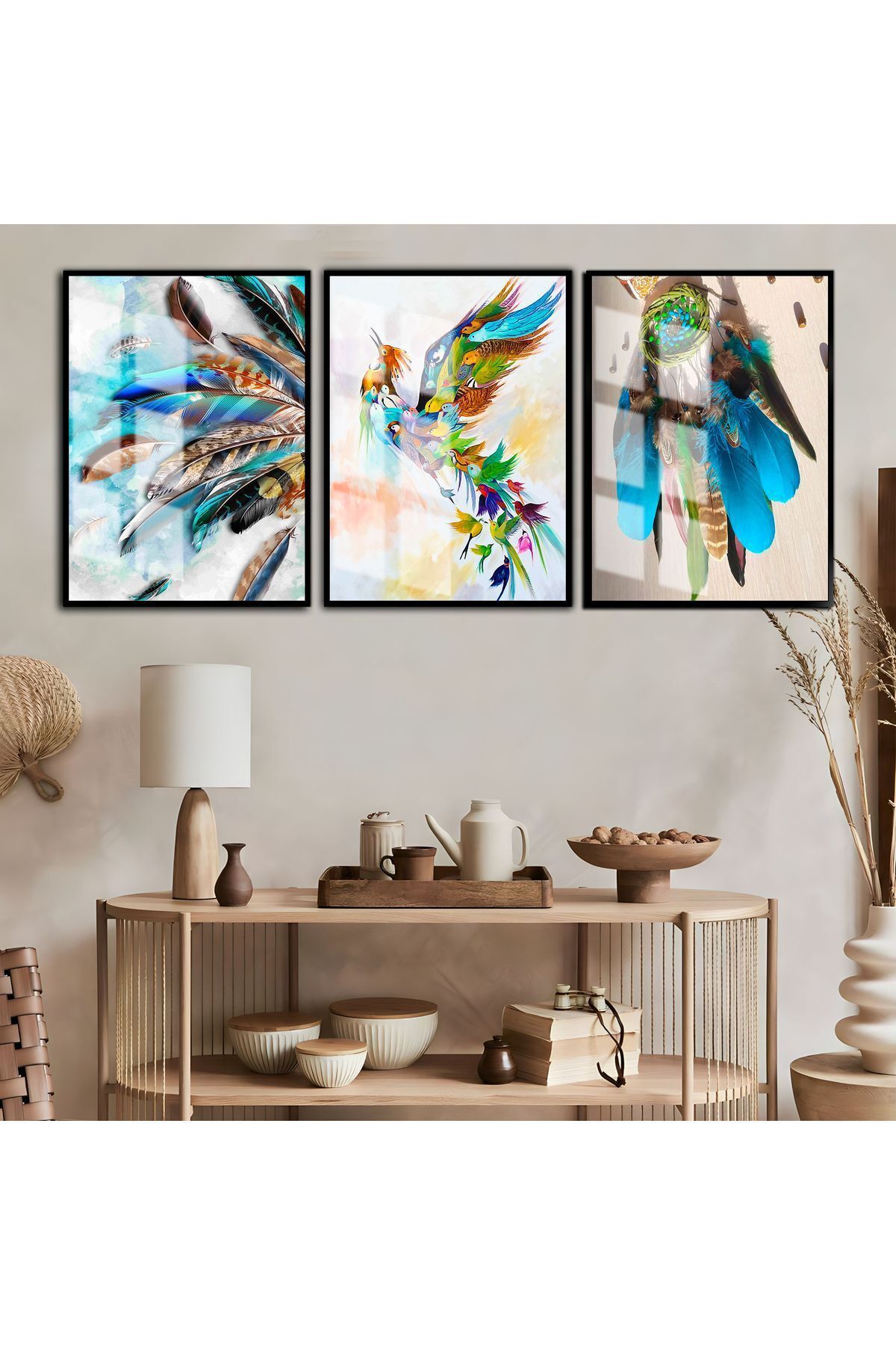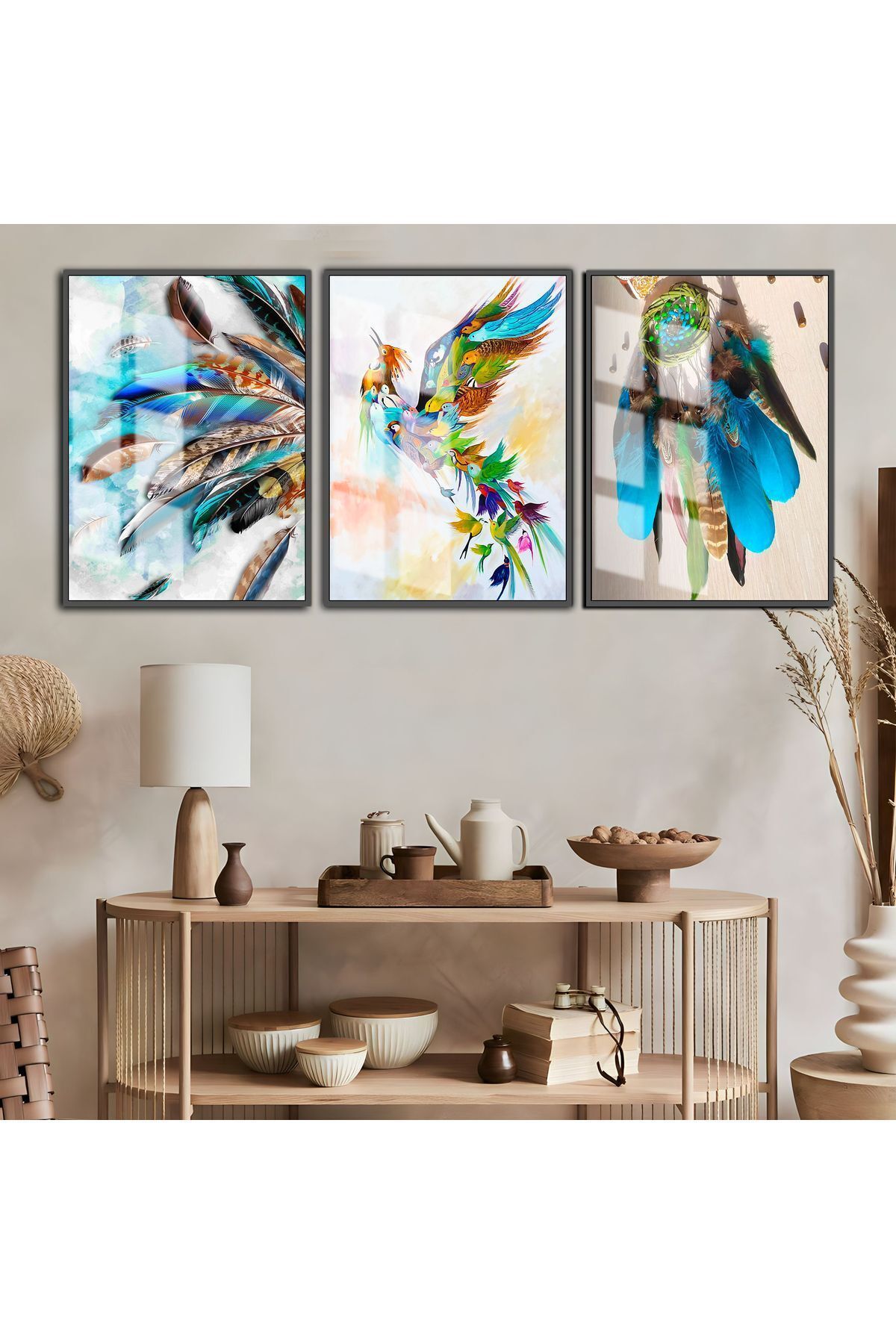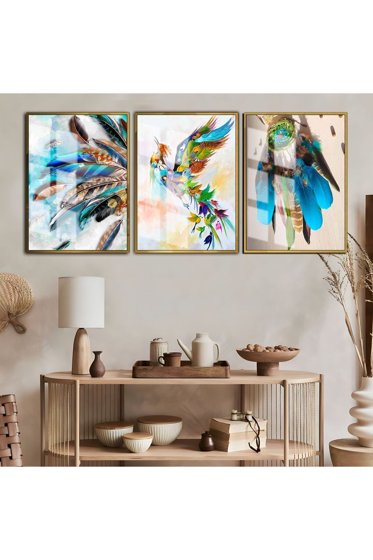 HARİKABİREV|RENGARENK KUŞ-TÜY KOMBİNİ|ÇERÇEVELİ TEMPERLİ CAM TABLO 3LÜ DİKEY HARİKABİREV|RENGARENK KUŞ-TÜY KOMBİNİ|ÇERÇEVELİ TEMPERLİ CAM TABLO 3LÜ DİKEY HRKBREVYNDLAC00105 50 x 70