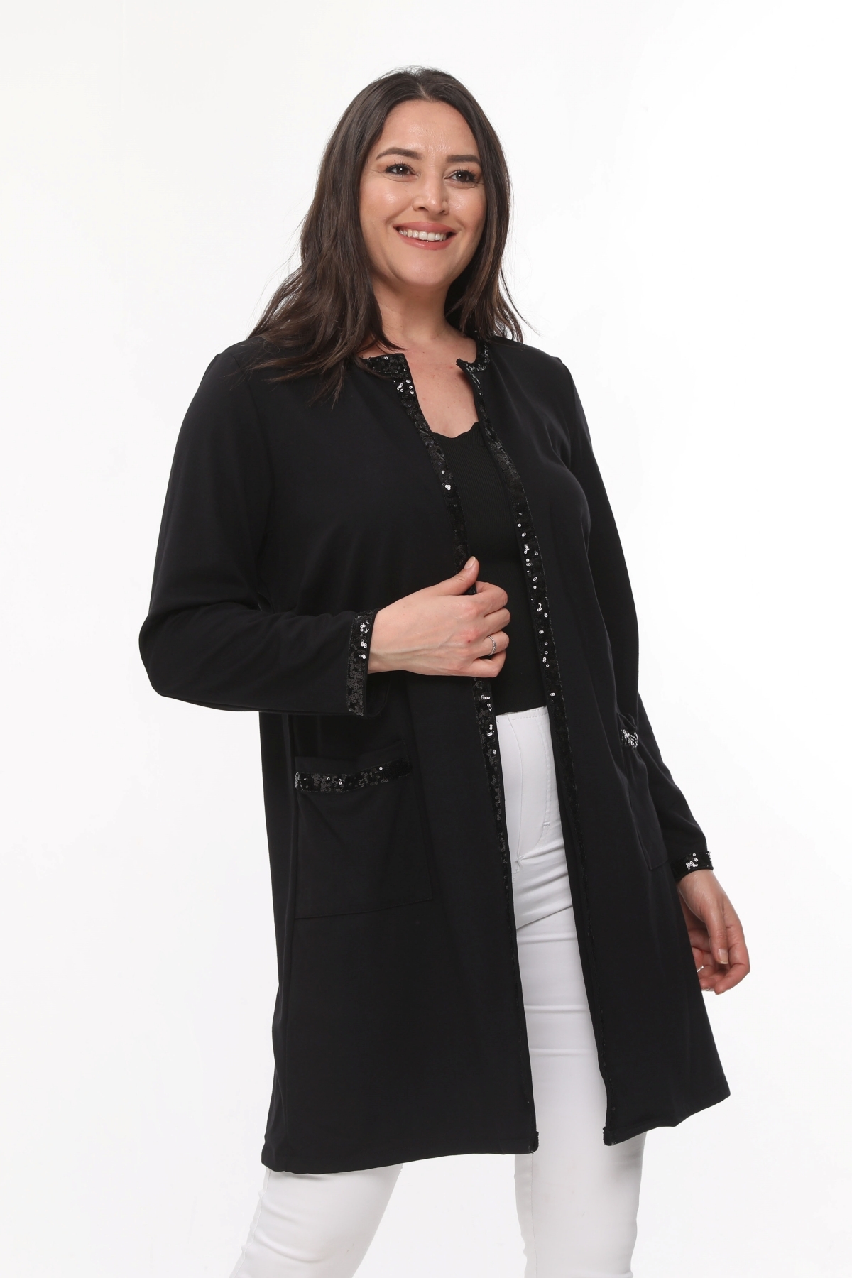Büyük Beden İnci Detaylı Krep Astarsız Kısa Ceket Büyük Beden İnci Detaylı Krep Astarsız Kısa Ceket B2314 50-52