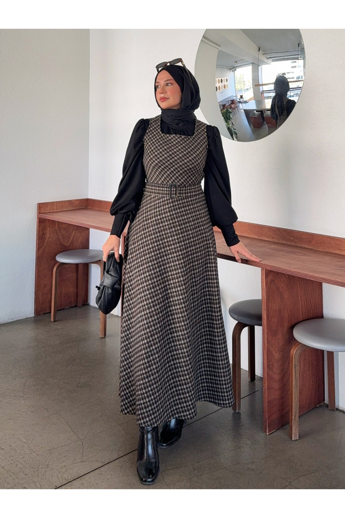 Siyah Kaşe Uzun Kışlık V Yaka Jile Elbise Ve Kaşe Şapka (ELBİSE-ŞAPKA) Siyah Kaşe Uzun Kışlık V Yaka Jile Elbise Ve Kaşe Şapka (ELBİSE-ŞAPKA) KCGM11566 48-50