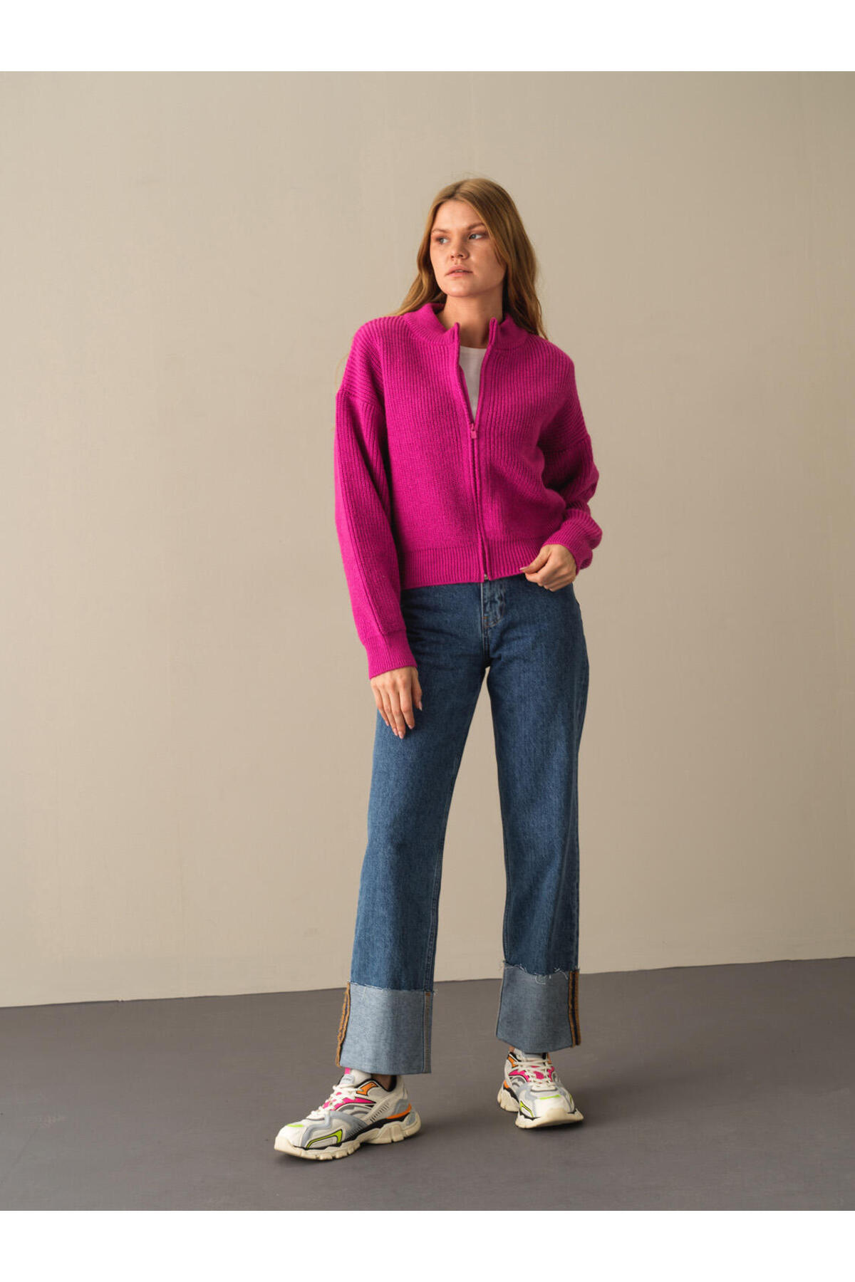 Kadın Pembe Pamuk Dokulu Regular Fit Kazak Kadın Pembe Pamuk Dokulu Regular Fit Kazak 850950 2XL