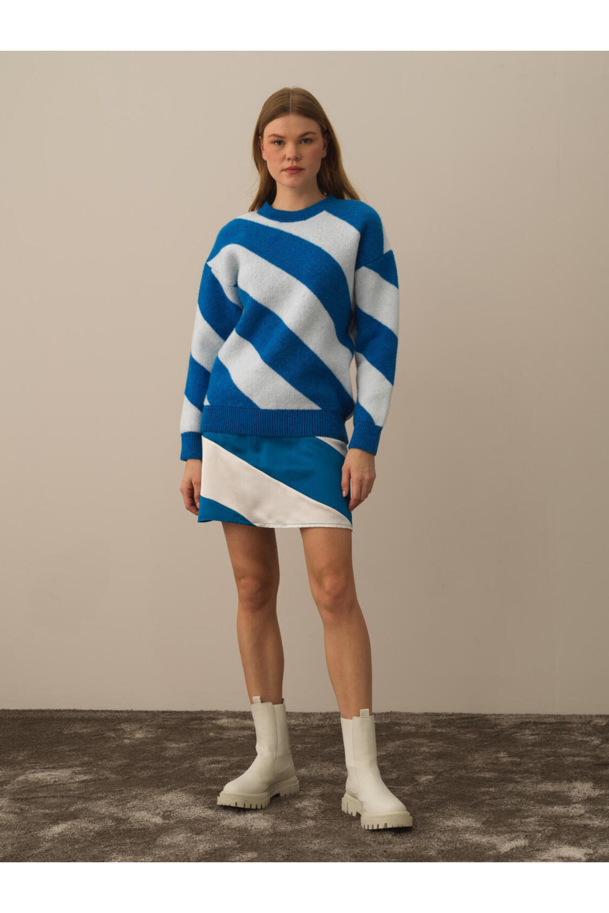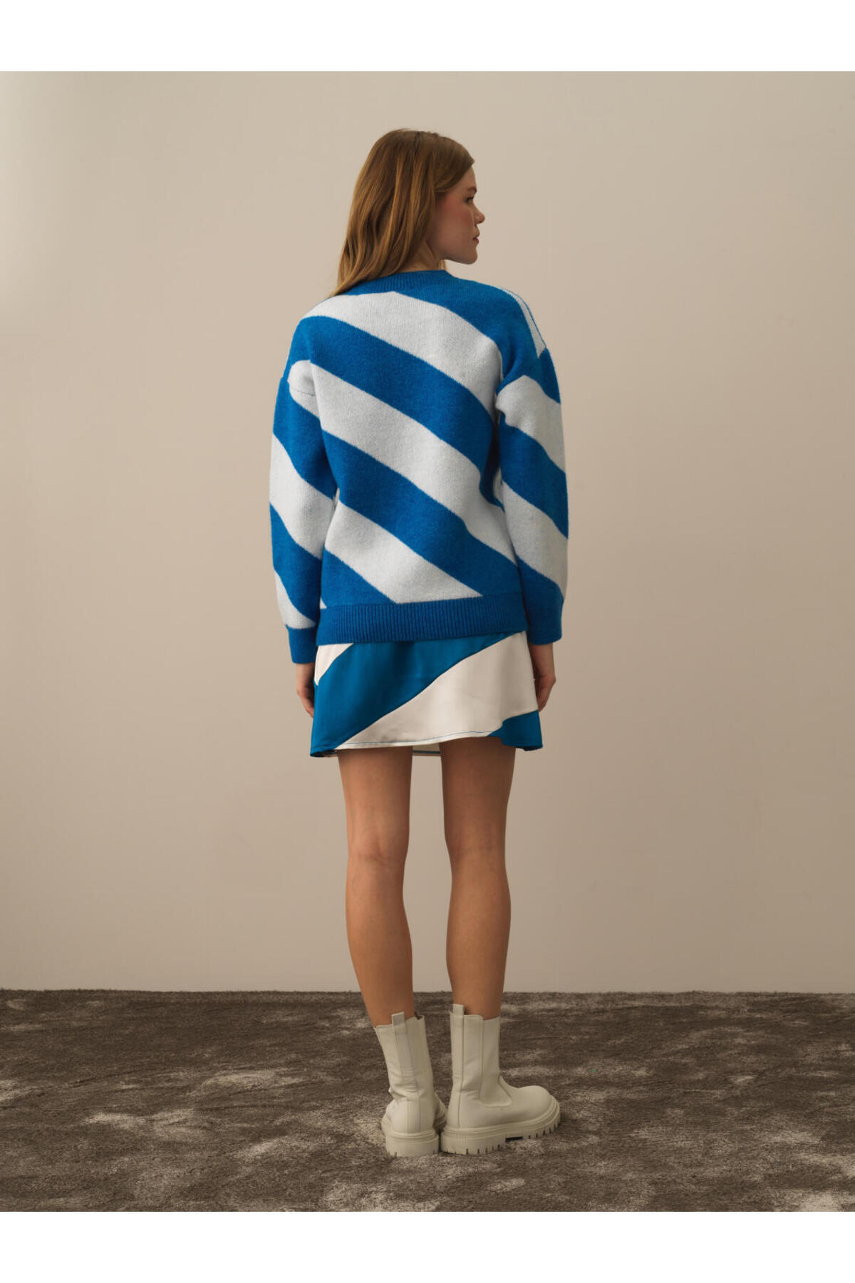 Kadın Mavi Lüks Pamuk Dokulu Oversize Kazak Kadın Mavi Lüks Pamuk Dokulu Oversize Kazak 850918 L