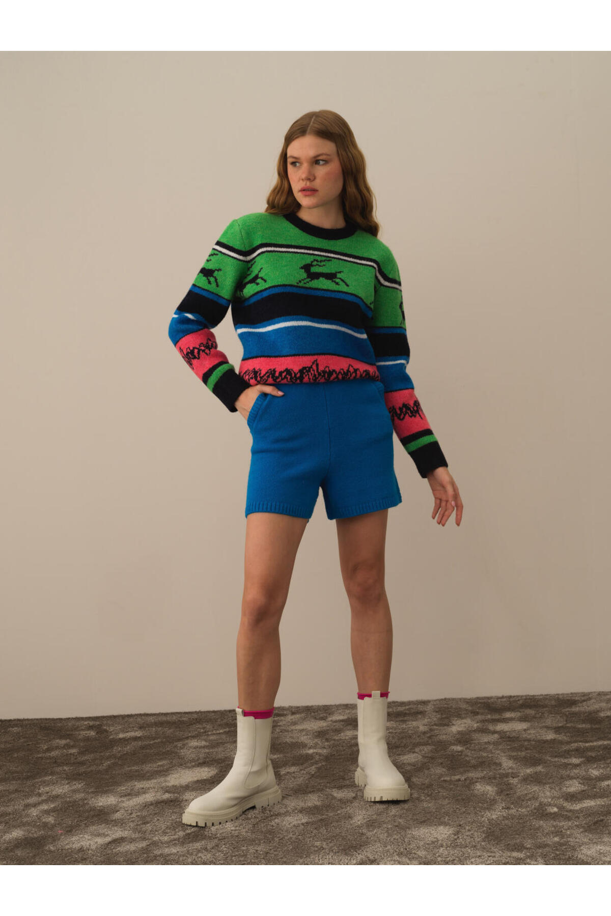 Kadın Mavi Regular Fit Yünlü Triko Şort Kadın Mavi Regular Fit Yünlü Triko Şort 850944 L