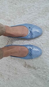 02 Mavi Simli Hakiki Deri Kadın Babet Ayakkabı 02 Mavi Simli Hakiki Deri Kadın Babet Ayakkabı 63-02 42