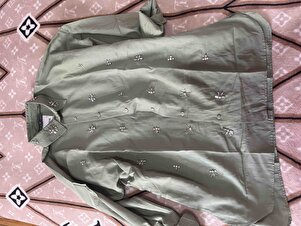 Kadın Küf Yeşili Yakası ve Önü Taşlı Altı Oval Dokuma Gömlek GML-19001149 Kadın Küf Yeşili Yakası ve Önü Taşlı Altı Oval Dokuma Gömlek GML-19001149 L