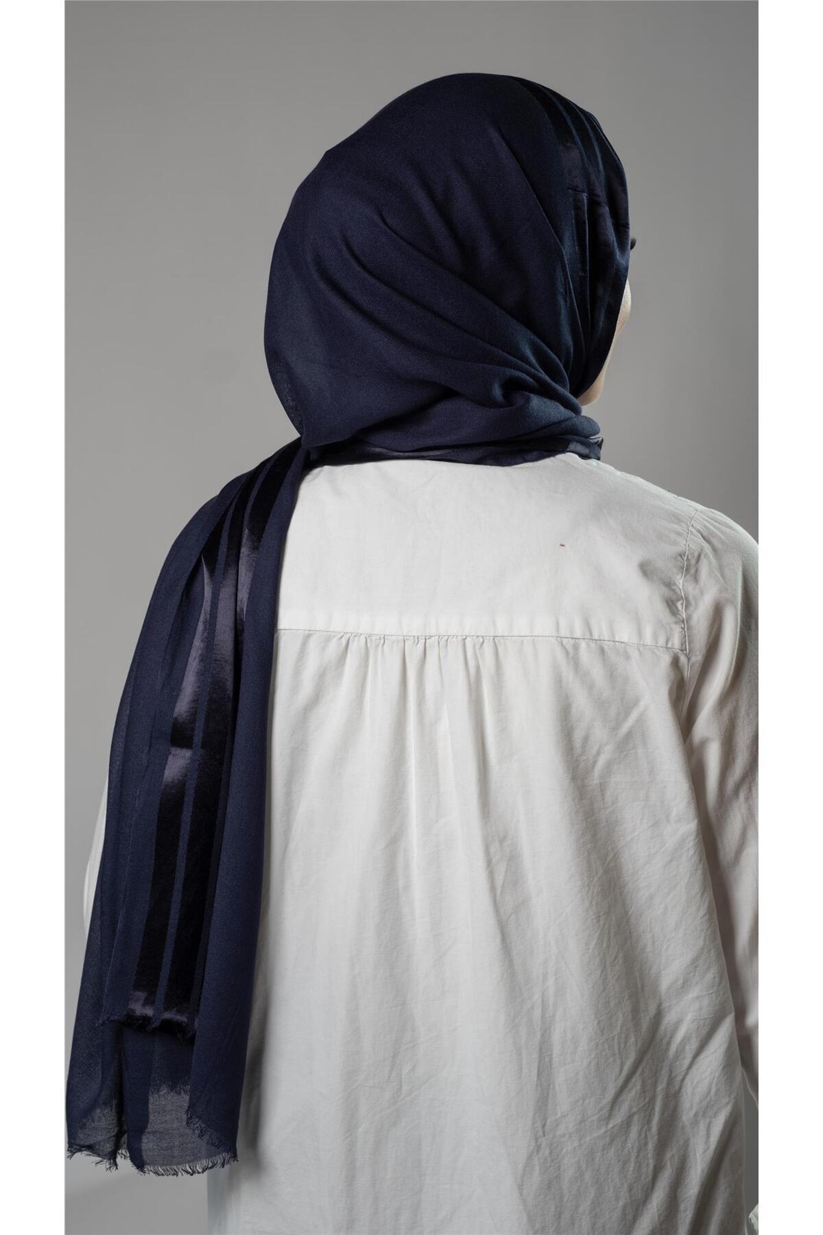 Lacivert Şerit Çizgili Şal Viskon Kumaş Bursa Dolama 202109_02 Lacivert Şerit Çizgili Şal Viskon Kumaş Bursa Dolama 202109_02 HB202109 تک سایز