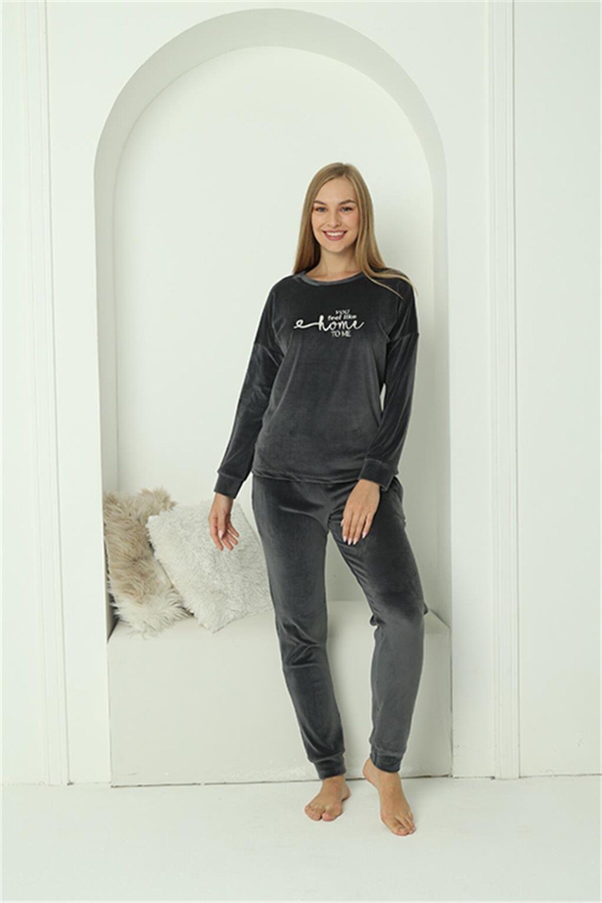 Kadın Kadife Mavi Pijama Takım 20624 Kadın Kadife Mavi Pijama Takım 20624 XL