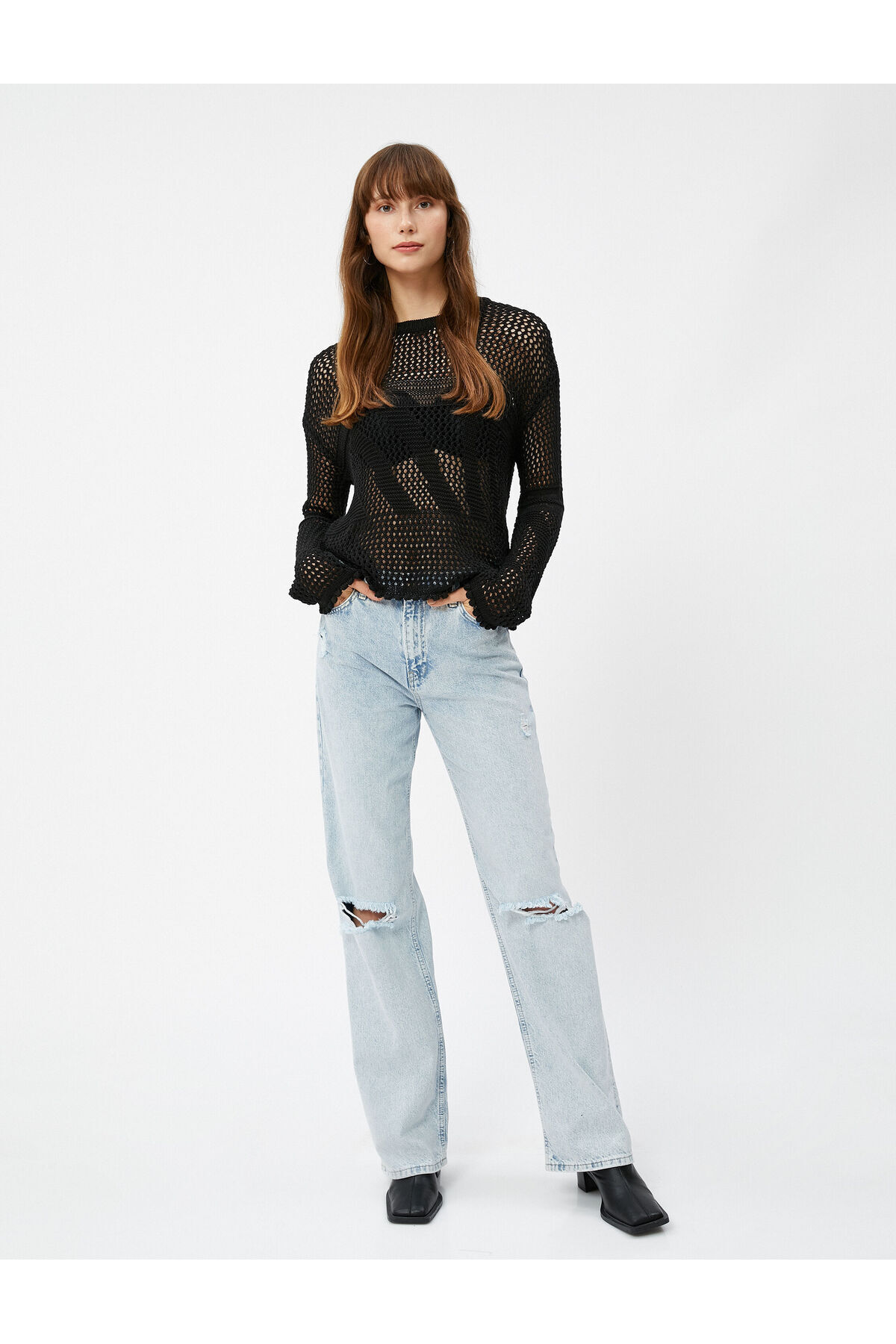 Ajurlu Triko Kazak Bisiklet Yaka Simli Ajurlu Triko Kazak Bisiklet Yaka Simli 4WAK30094EK XL