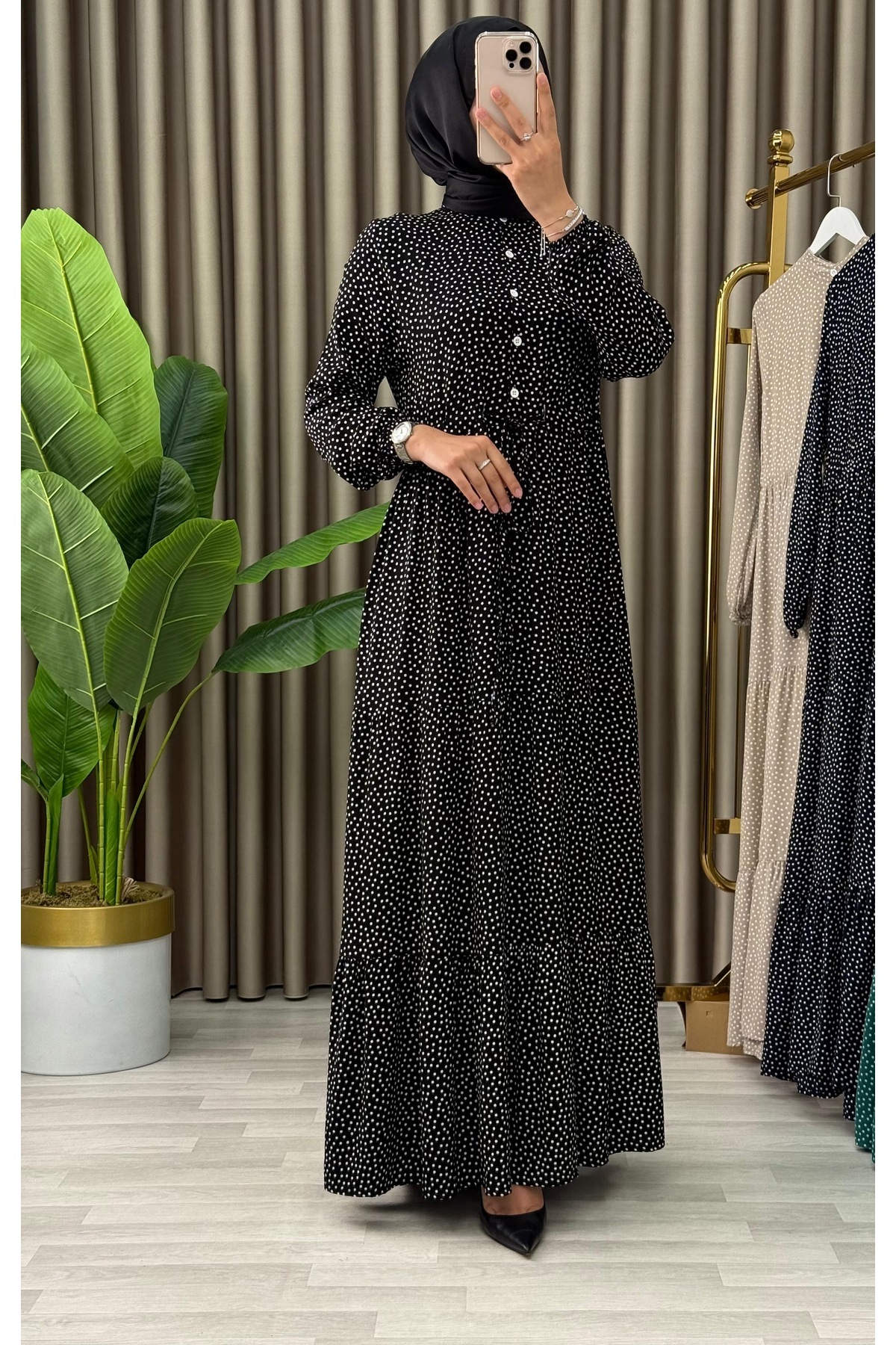 Kalpli Puantiyeli Dokuma Elbise - Siyah Kalpli Puantiyeli Dokuma Elbise - Siyah CDILK00AN5841 44