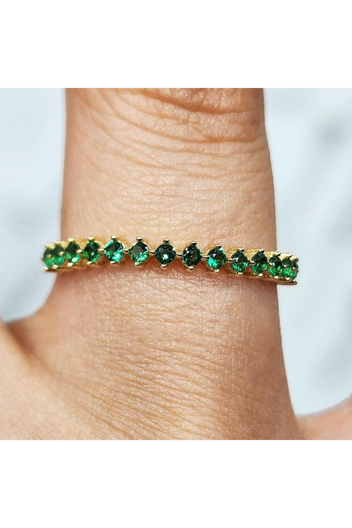 Yarım Tur Altın Yüzük - 14 Ayar Altın Zümrüt Yeşili Taşlı Yarım Tur Minimal Yüzük - Minimal Yüzük Yarım Tur Altın Yüzük - 14 Ayar Altın Zümrüt Yeşili Taşlı Yarım Tur Minimal Yüzük - Minimal Yüzük HNKYUZ2780 20